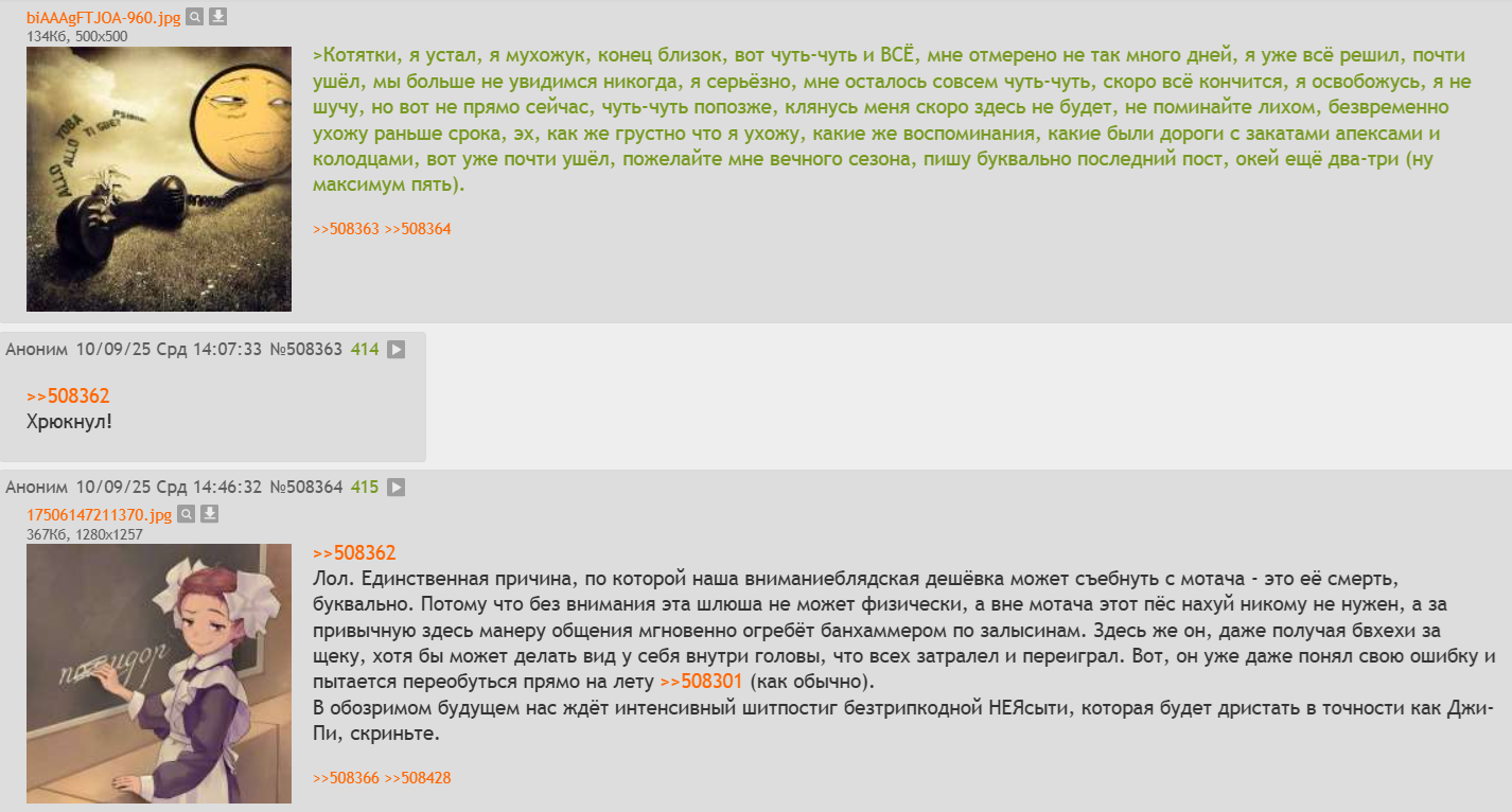 Помни! Треды живут в мотаче годами. Создавая новый тред, ты топишь старый.