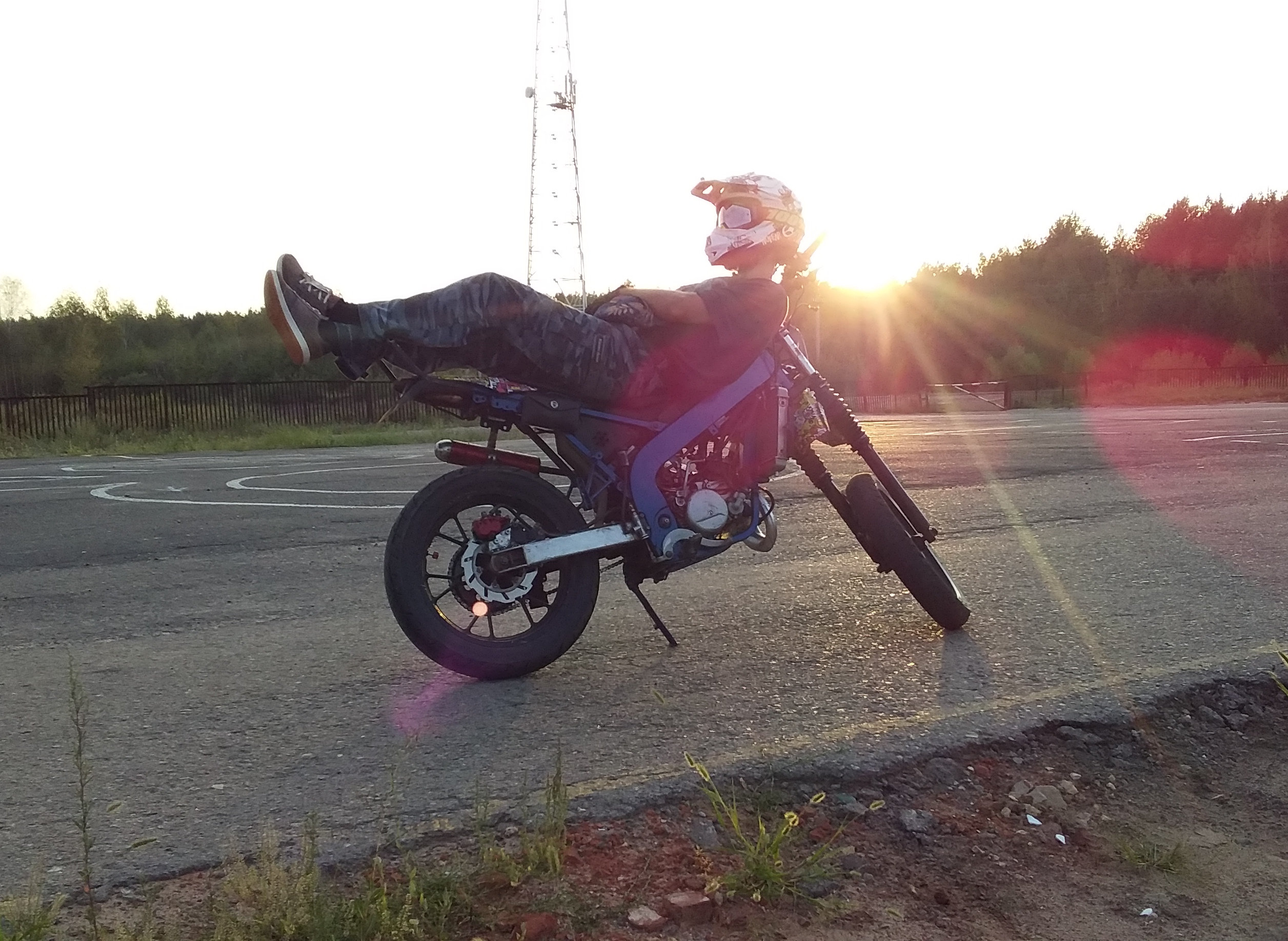 Сегодня приехал на свою площадку, а там нарисовали восьмёрку и всю сопутствующую поебень. Проверил свои навыки, убедился, что двачеры совсем конченные, если не могут сдать. А после стунтил и первый раз чиркнул брызговиком, чуть не обдристался.