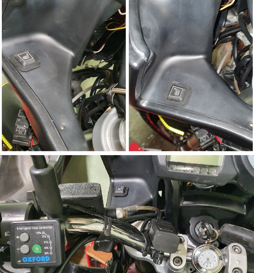 Пик3 это ещё одна история успеха, а именно путём тупого перебора были заказаны точно такие же корпуса предохранителей, какие на мотоцикле с завода. Увы, свободного места в основной колодке предохранителей нет - поэтому предохранитель жопогрейки был прищёлкнут к основному предохранителю (там точно такое же крепление).