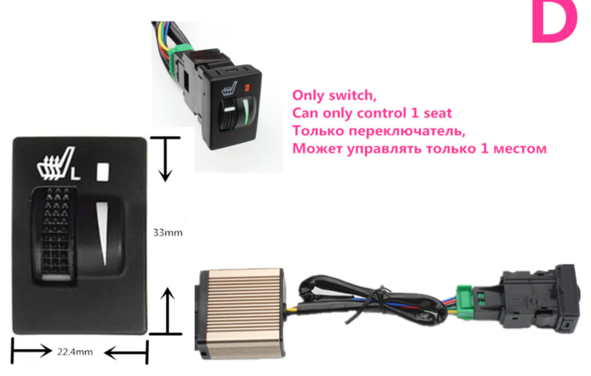 Поэтому подумываю её сменить на выключатель по-типу автомобильного, клавишного. Чтобы щёлкнул вслепую и сразу всё ясно. Естественно, без подводных тут никак: похоже, кнопка "умная", тк в неё приходит 2 провода питтания и из неё идёт 4 провода на жопогрейку (скорее всего 2 на датчик температуры и 2 на нагрев, но это предположение). Внешних релюх у нагревателя нет, то есть в кнопке находится и твердотельное реле (транзистор).
