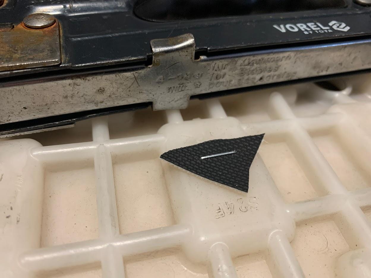 Пистолет всё же говнищем оказался либо скобы слишком мягкие, потому что приходится добивать ту, которая удачно зашла, а которая неудачно - вытягивать. Сук, даже мозоли натер на пальцах от пистолета, а это еще всего лишь половина одной сидушки.