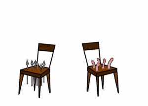Есть два стула: один жёлтый мягкий и жаркий и другой чорный твердый с вентилятором. Оба левел 2 если верить тому, что написано на них и на бумажках. На какой садиться то?
