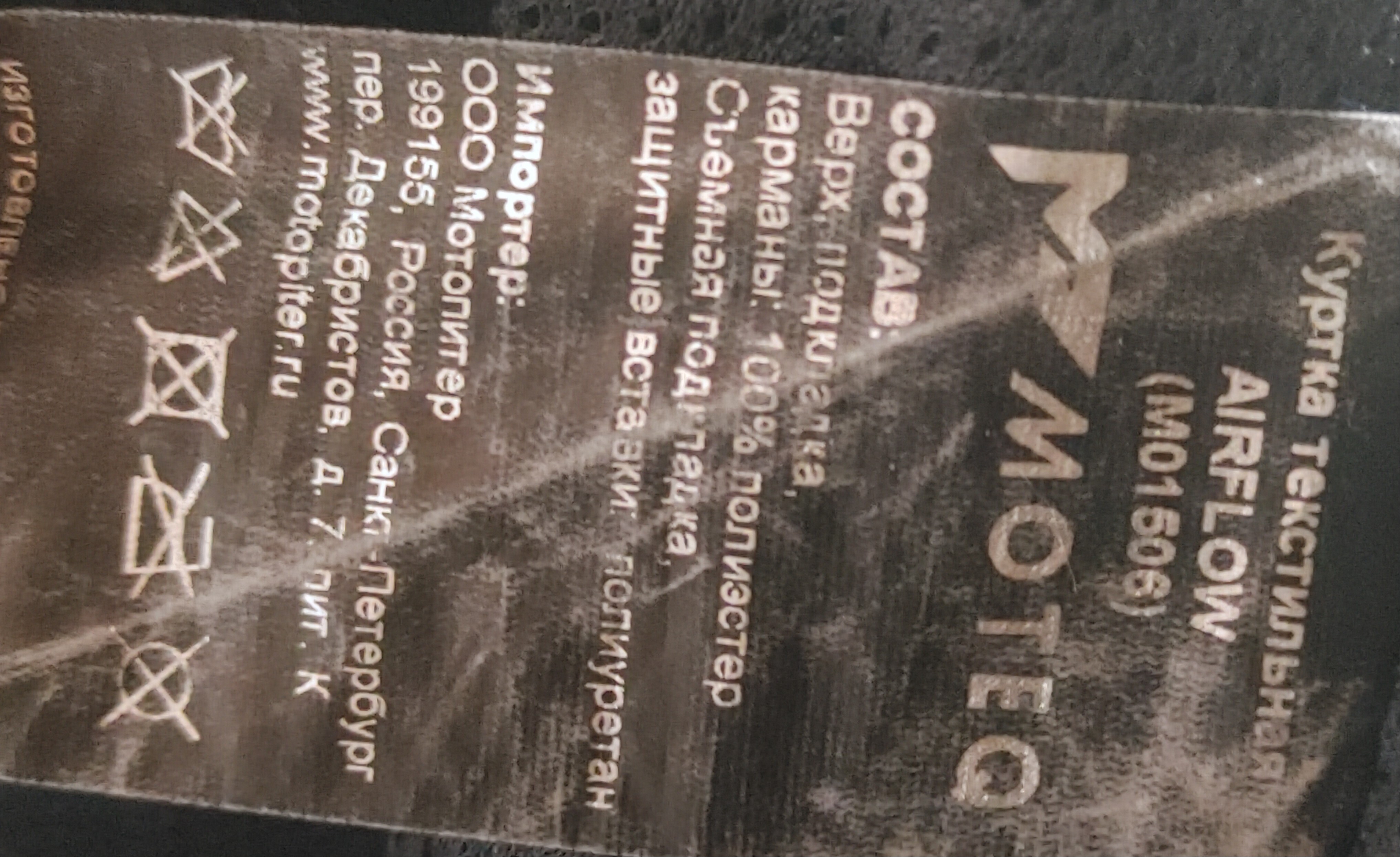 Сап мотачек. У меня есть текстильная куртка moteq airflow из которой не вынимаются щитки. Поскольку я трясущийся шерстяной енотик за несколько поездок она пропахла. Забава в том, что согласно ярлычку её вообще нельзя ни стирать ни химчистить. Она же не развалится если её в тёплой воде с мылом замочить?