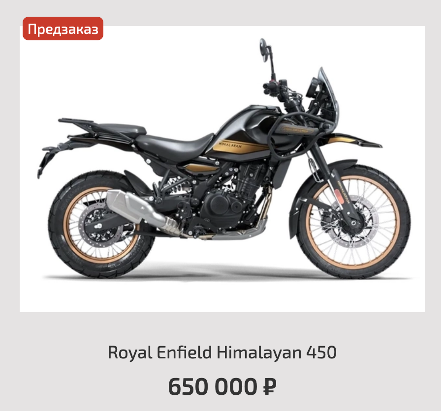 Штош, вот в нашу заснеженную и всеми забытую пердь и добралась ЛЕГЕНДА, один из лучших мотиков сегмента А2, убийца Спортстера, гопстопщик продаж Бонневиля, шататель Мотогусли V7, теснитель Кавы W800 и плеватель на могилу Урала. https://universalmotors.ru/motorcycles/royal-enfield/motorcycle-royal-enfield-interceptor-custom-dual-tone/ Прайс на сегодняшний день - 7500$ против 6200$ в штатах (скрин леплю для истории, не для рекламы). Пиздец, конечно, но всё ещё весьма приемлемо с учётом цен на свежие б/у классики. Мнения?