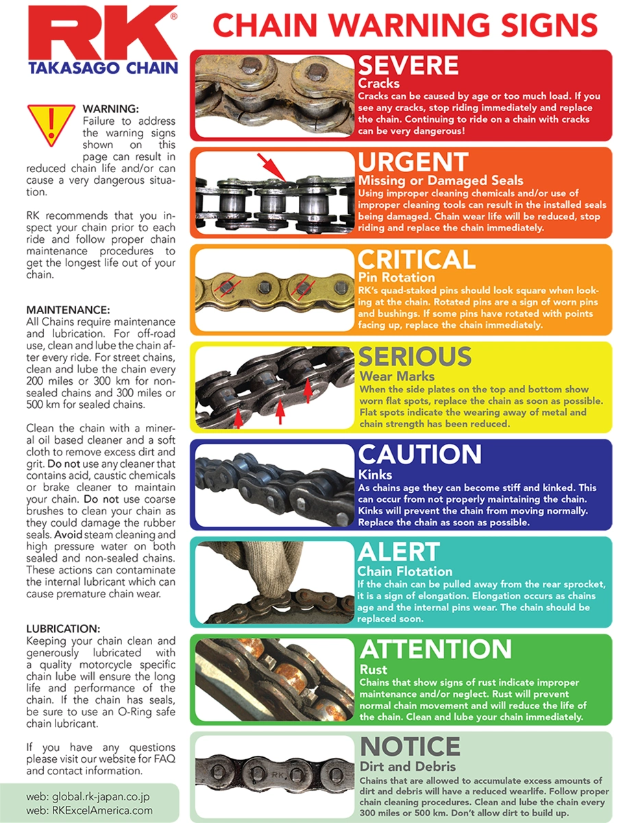 Без наружной смазки увеличивается трение сальника и его нагрев. Что может приводить к потере сальников. Самые жёсткие условия для сальниковых цепей - это пыль и песок. Эта среда быстро лишает сальники наружного слоя смазки что приводит к их потере. Источник: блог мотопутешественника Андрея Бересневича
