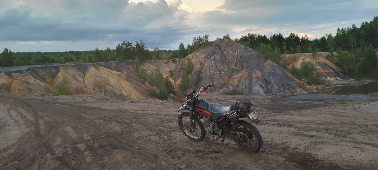 Серану тогда тоже своим видосом. Хотели разведать дорогу до карьера через лес, но к сожалению не получилось без выезда на асфальт. Мне-то на универсалке похуй, а посонам на эндурной резине не понравилось. По дороге проезжали через Краинку - очень атмосферный поселок, выглядит как локация из Atomic Heart. Фото не делал, но запланировал туда прокатиться на дорожном мотике. https://youtu.be/qepVydV0DKk