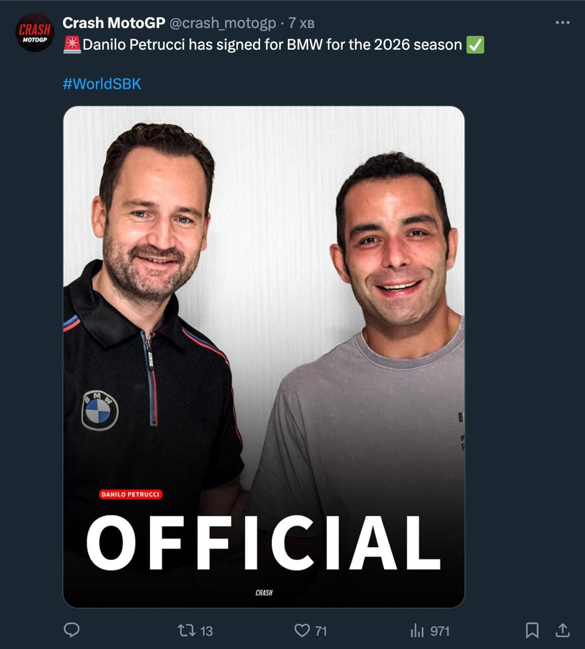 >>499889 Могут и поднасрать, конечно, но в целом есть места, где ему будут рады. Ему и так Маркес карьеру сломал, отобрав байк-победитель. Априлька в последней гонке поехали не благодаря тому, что это мегамотоцикл, а только из-за неверного выбора резины у всех остальных гонщиков.