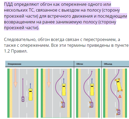 > 11.2. Водителю запрещается выполнять обгон в случаях, если: > ... > по завершении обгона он не сможет, не создавая опасности для движения и помех обгоняемому транспортному средству, вернуться на ранее занимаемую полосу.