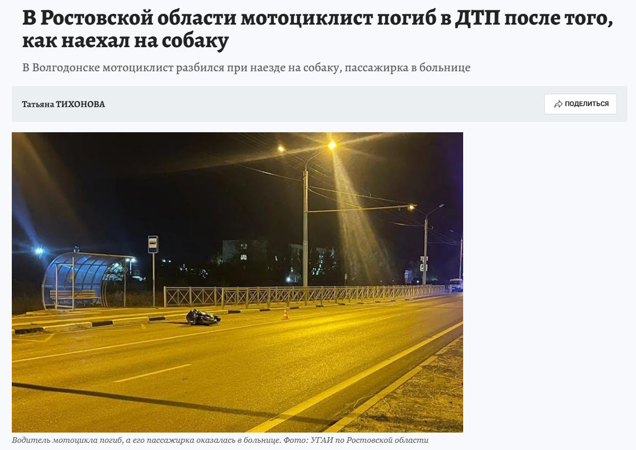 >>480780 В школах учат давить животное не просто так. А потому что знают. Что большинство никогда не освоит повороты! Вот и перед данным мотолохом встал выбор: чесать пузо в экстренном ложении, или подскользнуться на собаке. Лох-лох ситуация в его случае. Ехал как мог, и выбрал как мог.
