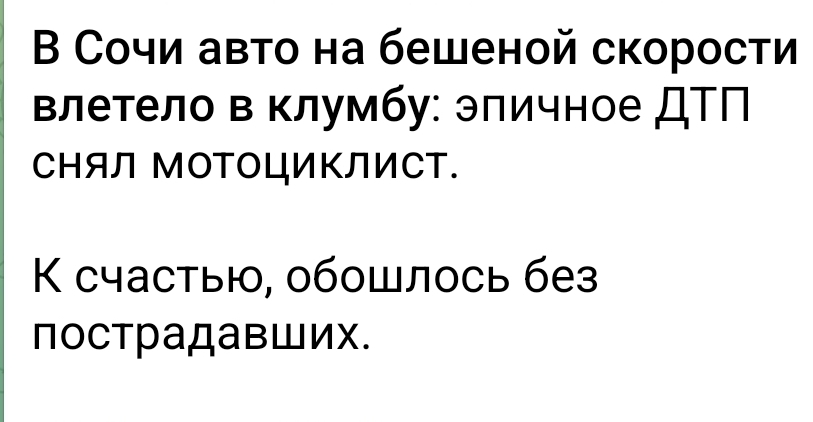 >>482262 Вдаль, вдаль ангел. Говорят что тип был нетрезвый, на замедленном просмотре я увидел что он пытался резко объехать трактор, но перегазовал и проехал некоторое расстояние на заднем колесе. Странно, но у него вытекли мозги, и через пару дней он скончался в больнице.