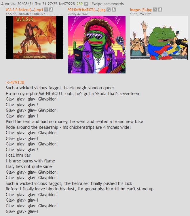 >>479130 Such a wicked vicious faggot, black magic voodoo queer Ho-mo nym-pho-MA-NI-AC!!!, ooh, he's got a Skoda that's seventeen Glav- glav- glav- Glavpidor! Glav- glav- glav-! Glav- glav- glav- Glavpidor! Glav- glav- glav-! Paid the rent and had no money, he went and rented a brand new bike Rode around the dealership - his chickenstrips are 4 inches wide! Glav- glav- glav- Glavpidor! Glav- glav- glav-! Glav- glav- glav- Glavpidor! Glav- glav- glav-! I call him liar His arse burns with flame Liar, he's not quite sane Glav- glav- glav- Glavpidor! Glav- glav- glav- Glavpidor! Such a wicked vicious faggot, the hellraiser finally pushed his luck Before I finally leave him in his dust, I'm gonna piss him till he can't stand up Glav- glav- glav- Glavpidor! Glav- glav- glav-! Glav- glav- glav- Glavpidor! Glav- glav- glav-!