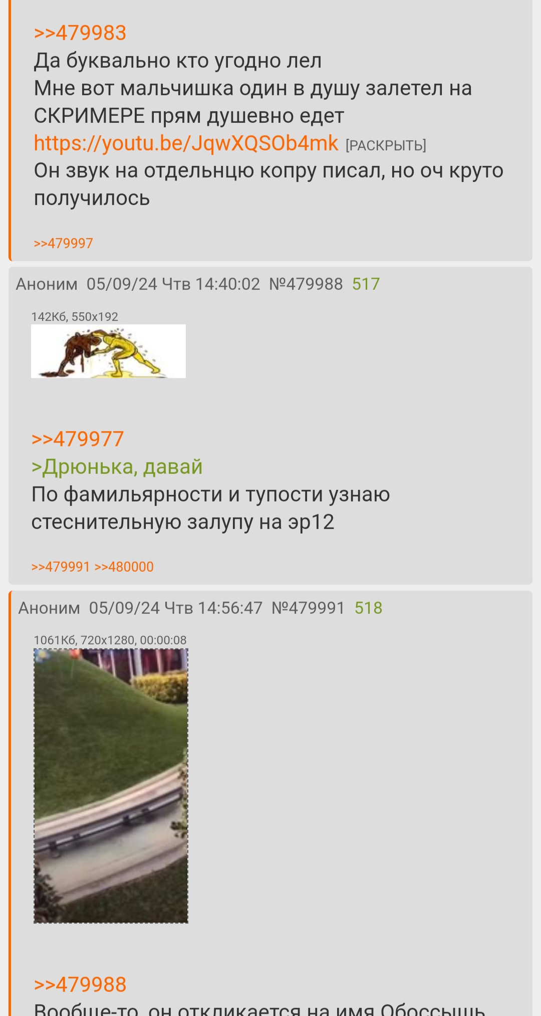 >>479599 Темнимени, на обоссыша постоянно стал только ты отвлекаться. И сейчас вот опять лел. >>479610 Так я и назвал, и место и время и даже с учётом выходных. Только запруфать приколюху из швейцарии тут некому, в отличии от германии. >>479615 Новая перемога. >>479618 Новый оборот колеса залупьих историй лел >>479621 Кек
