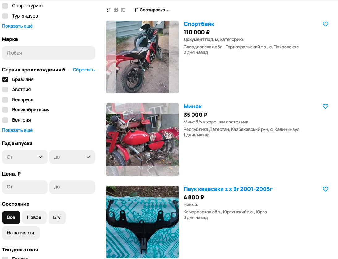 Буду краток. Работаю продакт-менеджером в Авито. Сейчас формирую бэклог доработок по мото-разделу. Если вам не хватает каких-то фильтров, данных в карточке, что-то неудобно или раздражает – пишите, попробуем поправить к следующему сезону.