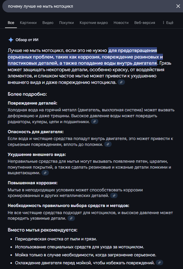 >>498676 С чего ты взял, что прям пидорю хром? Просто после большой покатушки или попадания в дождь не ленюсь заехать на мойку аккуратно смыть мошкару/грязь. И мне приятнее на чистый моц садиться, и лкп лучше сохранится.