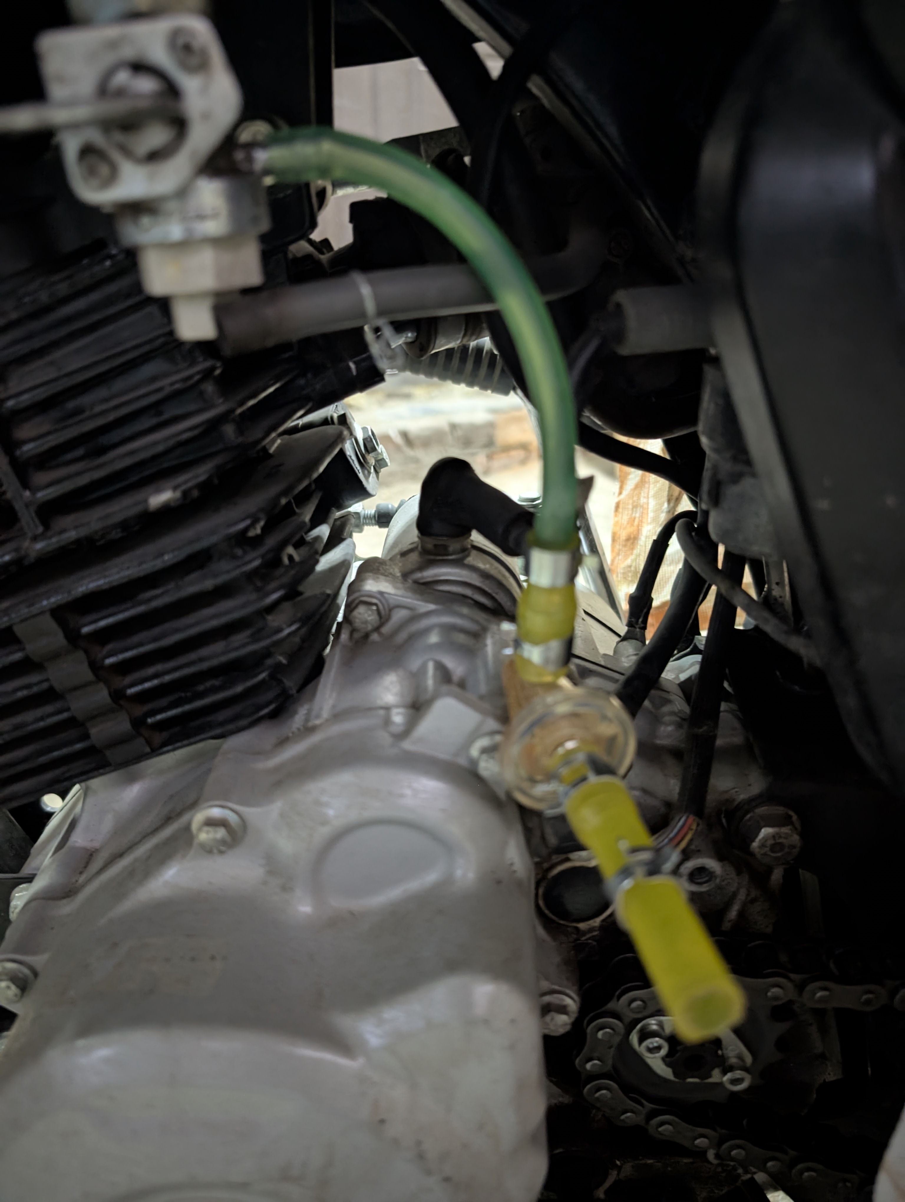 Мотачик! Так а всё таки зачем вот эта бипка вверх торчащая, которая такая же, как для подачи топлива? Я думал, что её надо соединять с фильтром воздушным, чтобы лишние газы туда шли, а почему-то, когда сегодня прогревал мотак, чтобы маспо поменять, то в этой трубке откуда-то газолин появился. Ну я на всякий случай просто заглушил шланг на фильтр и сделал шланг вывода вниз от этой бипки.