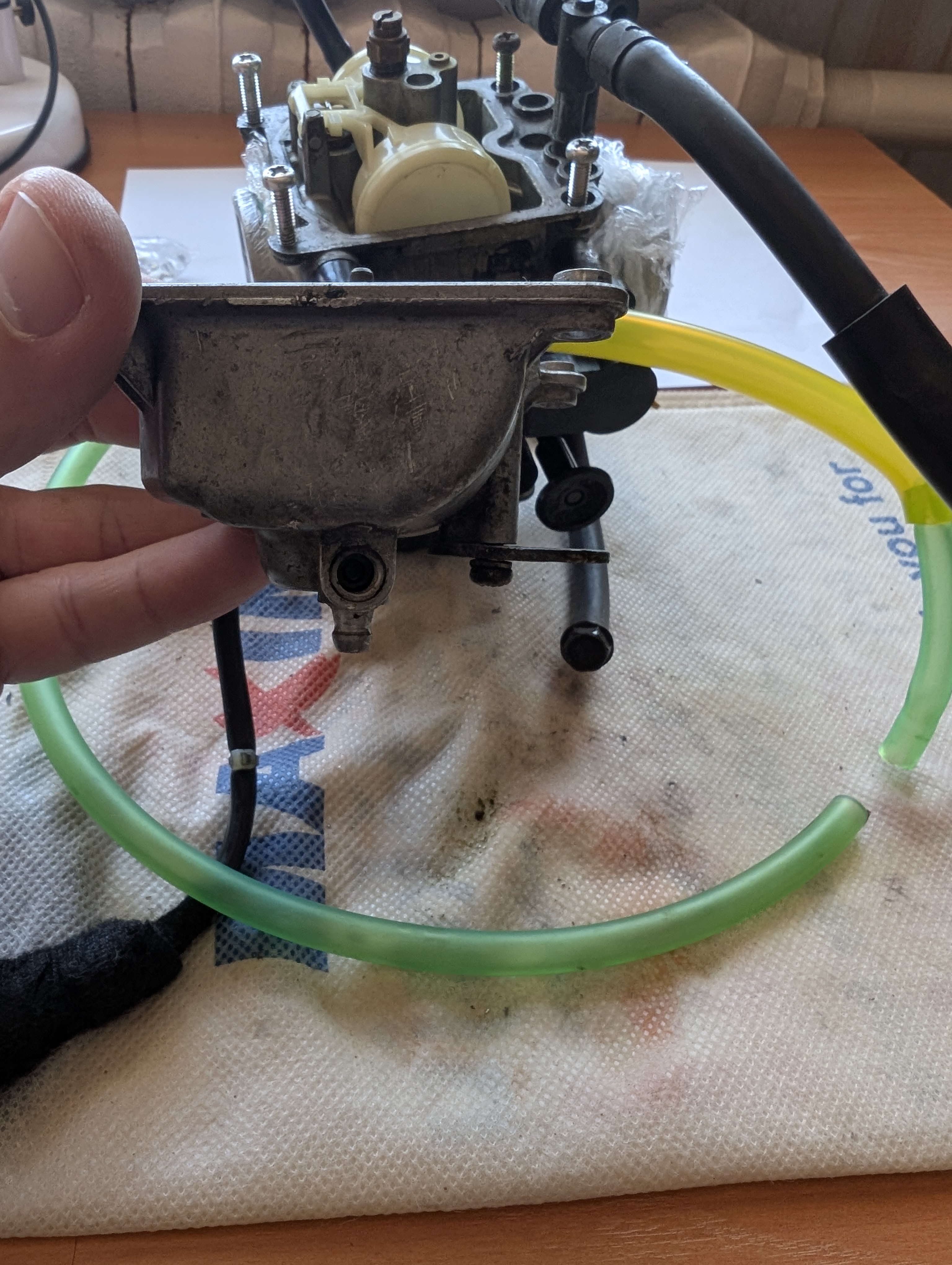 Я disassembled курбулятор. Там засрано, особенно где мембрана, да и вообще везде. Для успешного разбора пришлось изготовить спец отвёртку путем стачивания излишков у обычной, чтобы добраться до idle jet, алсо, понадобилось сходить в магазин и купить набор инструментов, которые типа форма звёздочка с дыркой, дабы открутить болты у датчика дроссельной заслонки. Ну короче разобрал, что разбирается и загрузил в ультрасоник ванну, но жду химию, которая должна завтра прийти, тогда и посмотрю, насколько это оверрейтед шайтан машина или годнота.