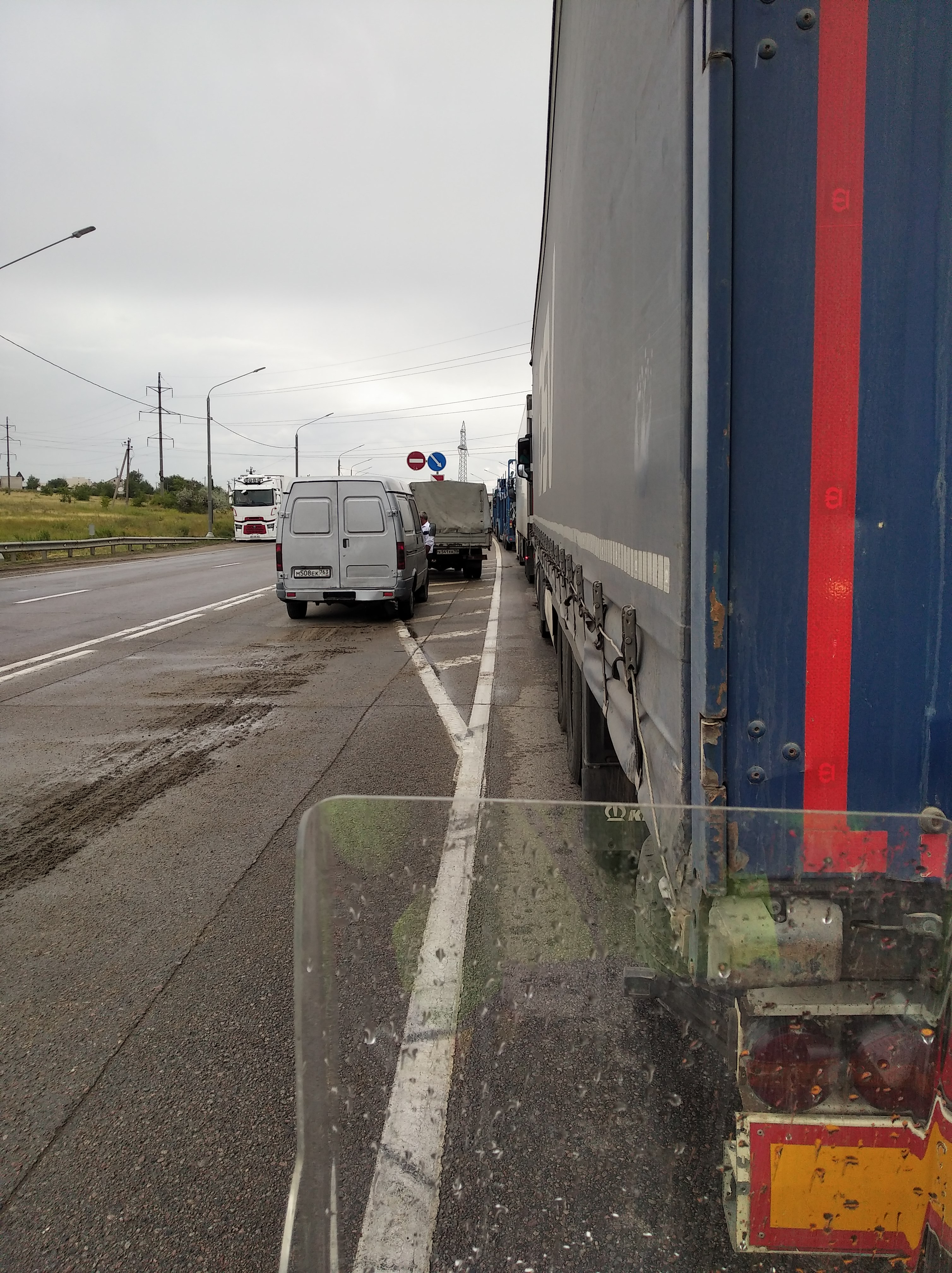 Вертел я ведомой звезде проезжать большие города! Волгоград, блин. 5 часов на него ушло, если не больше. Он длинный, как колбаса. Ещё и ливень. И продавленные коллеи в асфальте, наполненные водой так, что при перестроении каждая машина обдавала меня струёй в харю. Уххх Блин! И светофоры. Миллион светофоров через каждый квартал. И ВСЕГДА красный. На 5-10 секунд. И так 40км или сколько там город тянется. И ЖПС не работает. Ладно хоть там одна улица.