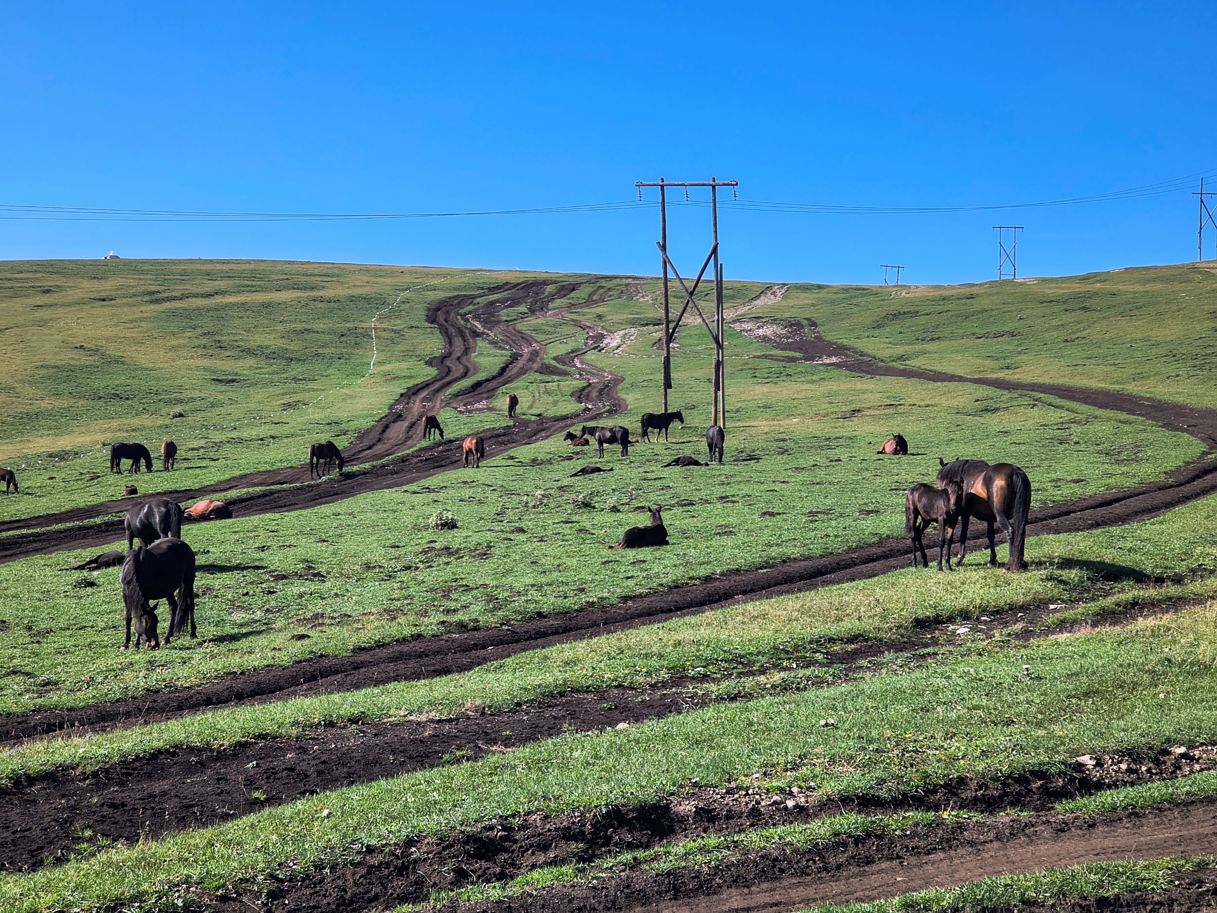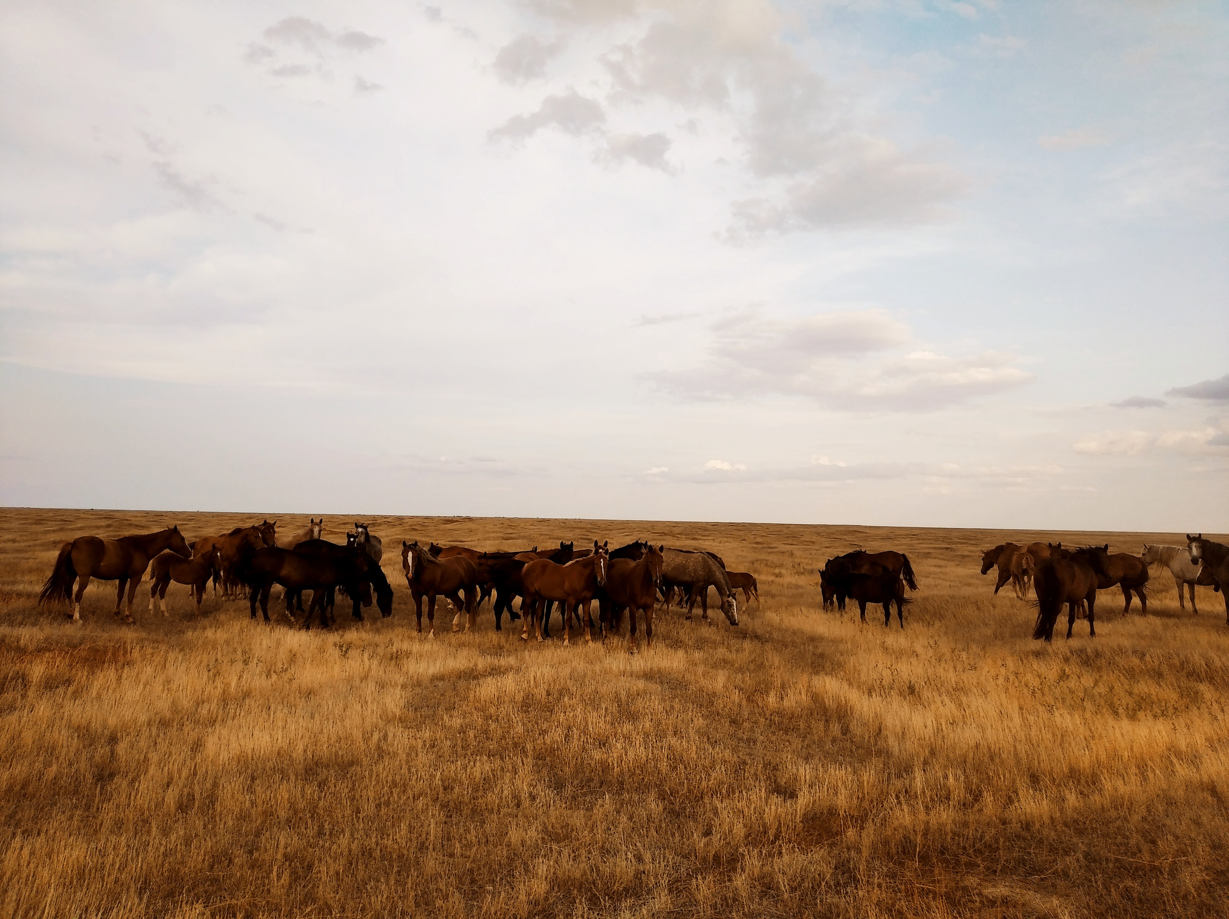 Вообще, внезапно степи не такие жёлтые, как я видел ранее. А зеленоватые даже. Ягель какой-то цветёт тут. Всюду говно. Я провёл беглый органолептияеский анализ, мол, не медведь ли, шакал или койот. Кони. Кони не страшно. Вот только, в палатке теперь пахнет говном.