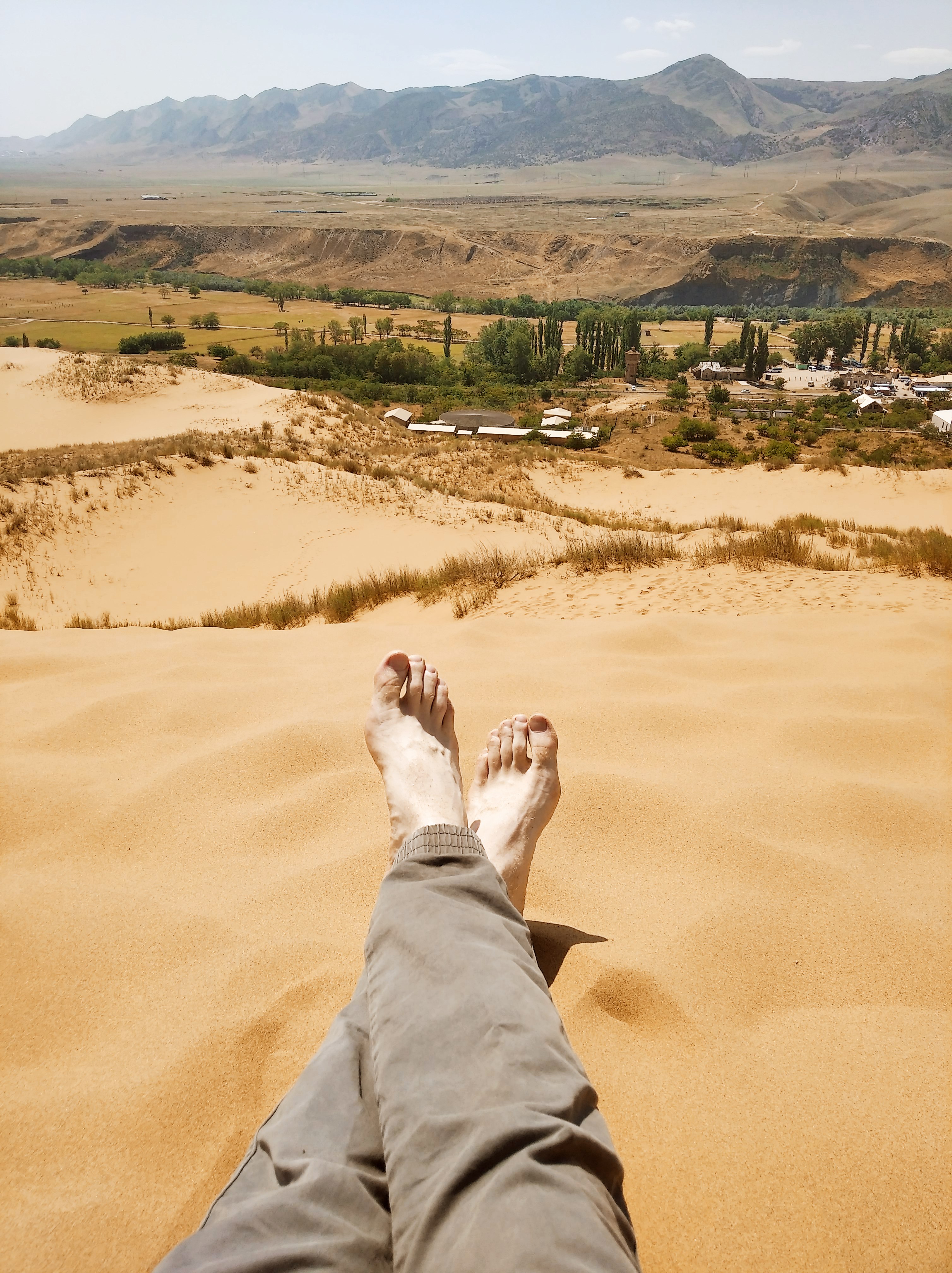 Потому, утром я поехал в офигеннейшее место - бархан Сарыхум. Восхитительная куча песка. Да ещё и огроменная! Метров 150 высотой. Я люблю пустыни, я понял. Забрался туда, там лестница, и походил босиком по пескам. Кааайф, но горячо. Оче. Думал, на жопе скачусь, а фигушки. Он не осыпается так лихо ,как я надеялся. Надо подстилку какую-то.