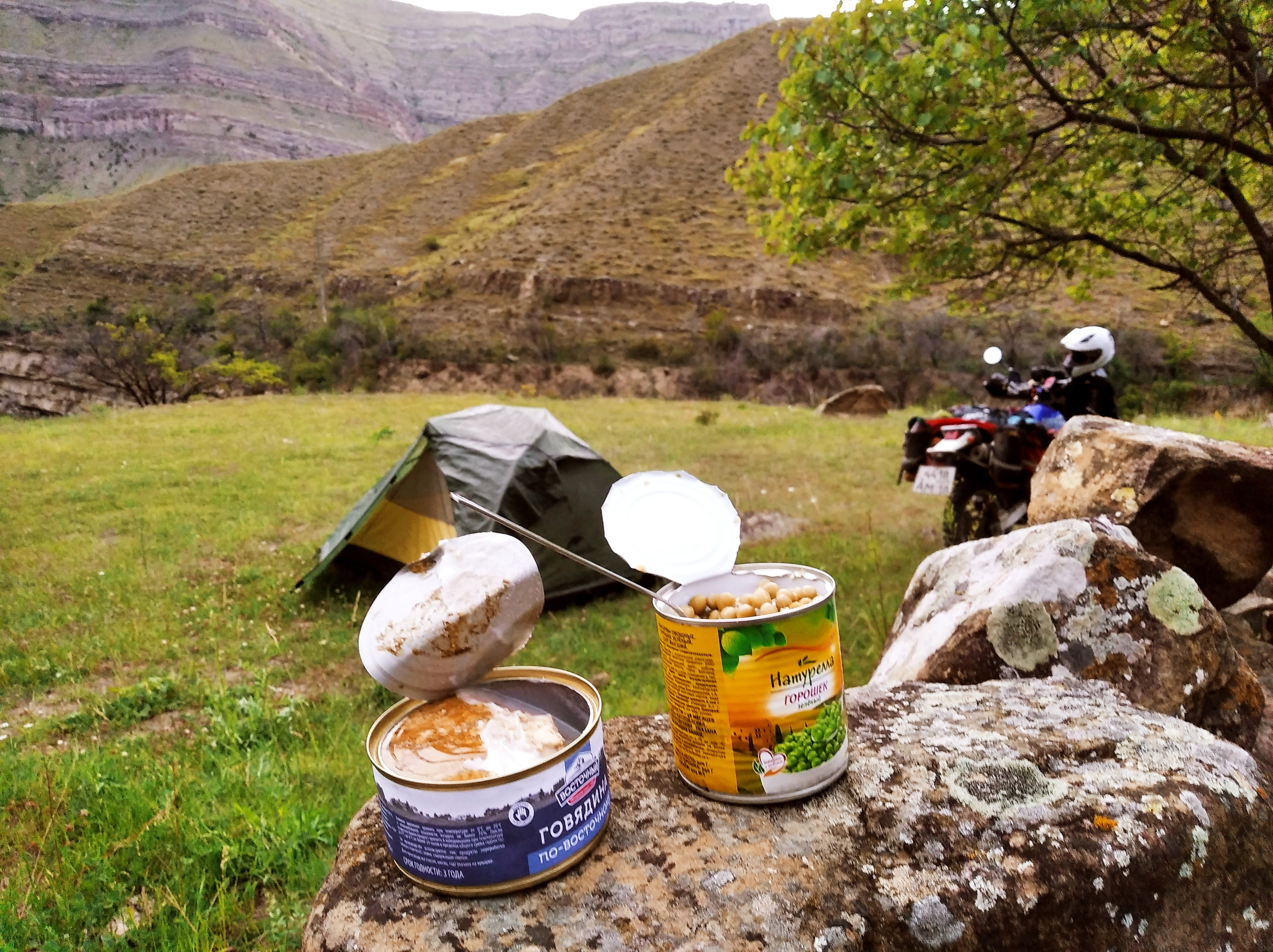 Купил у дедушки пакет абрикосов за 200рублёв. Едрить вкусные! Думал, поужинаю ими. А вот фиг! Не наедаешься. Сижу сейчас под посёлком Гоор и наворачиваю тушёнку с зелёным горошком. Не свиная! Так что, не харам. Гоор, кстати, тоже офигенное место с величественными видами и ЯЗЫКАМИ ТРОЛЛЯ, на подобии Норвежских. Но, те конечно масштабнее. Хотя, и здесь обрывчик ой-ёй-ёй-ёй. Я голову высунул туда, страхово. Ещё и башни прикольные, как в фильме Не бойся, я с тобой. Когда они держали оборону в конце фильма. Только эти башни меньше раза в 3. Худее.