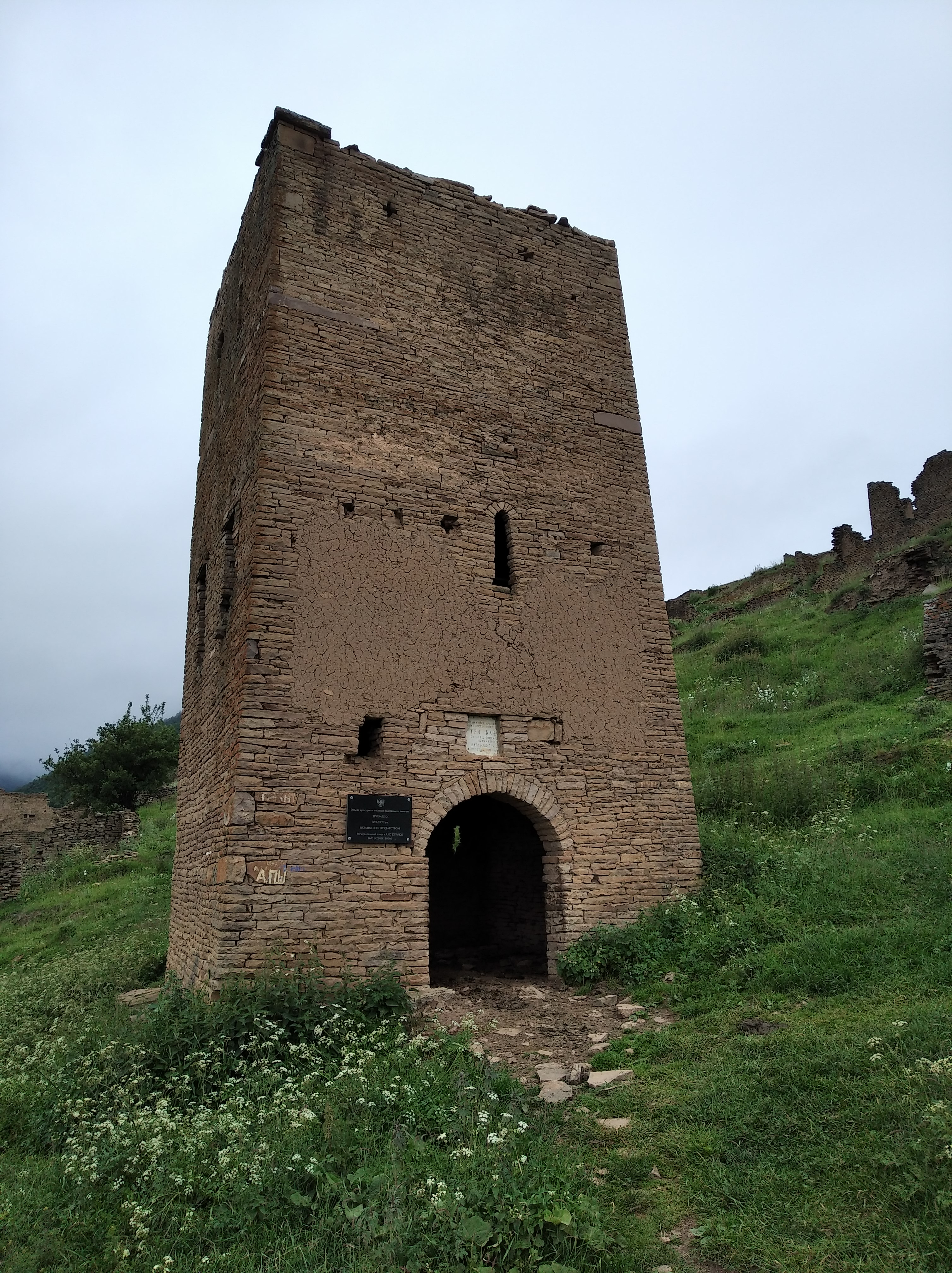Сегодня был полностью ПЕШКОДРАЛЬНЫЙ ДЕНЬ. Утром, в 8 часов я стартанул в аул-призрак Гамсутль. Чтобы духи меня приняли, я обоссал палатку по кругу 3 раза. Не сработало. Они послали мне дожди и туманище. Если кто-то соберётся туда же, знайте там уазики за 100р довозят полпути вверх, откуда ещё около часа хода пешком среди куч свежего говна. Я же пошёл рано, и уазиков не было. Потому, путь у меня занял полтора часа вверх и час вниз. Но, оно того стоило. Если б тумана не было, добавились бы божественные виды. А в моём случае, туман добавил таинственности и мистики. Сам Гамсутль прикольный аул с непередаваемой атмосферой. Старая кладка, среди которой встречаются камни с мусульманскими надписями или узорами. Старая планировка, узкие улочки, стены оштукатуренные глиной с сеном, потолков нет. Но, есть хорошо сохранившийся дом последнего жителя, который умер 10 лет назад. Там даже вещи его лежат. И сральная комната работает. Офигенное место, но идти далеко.