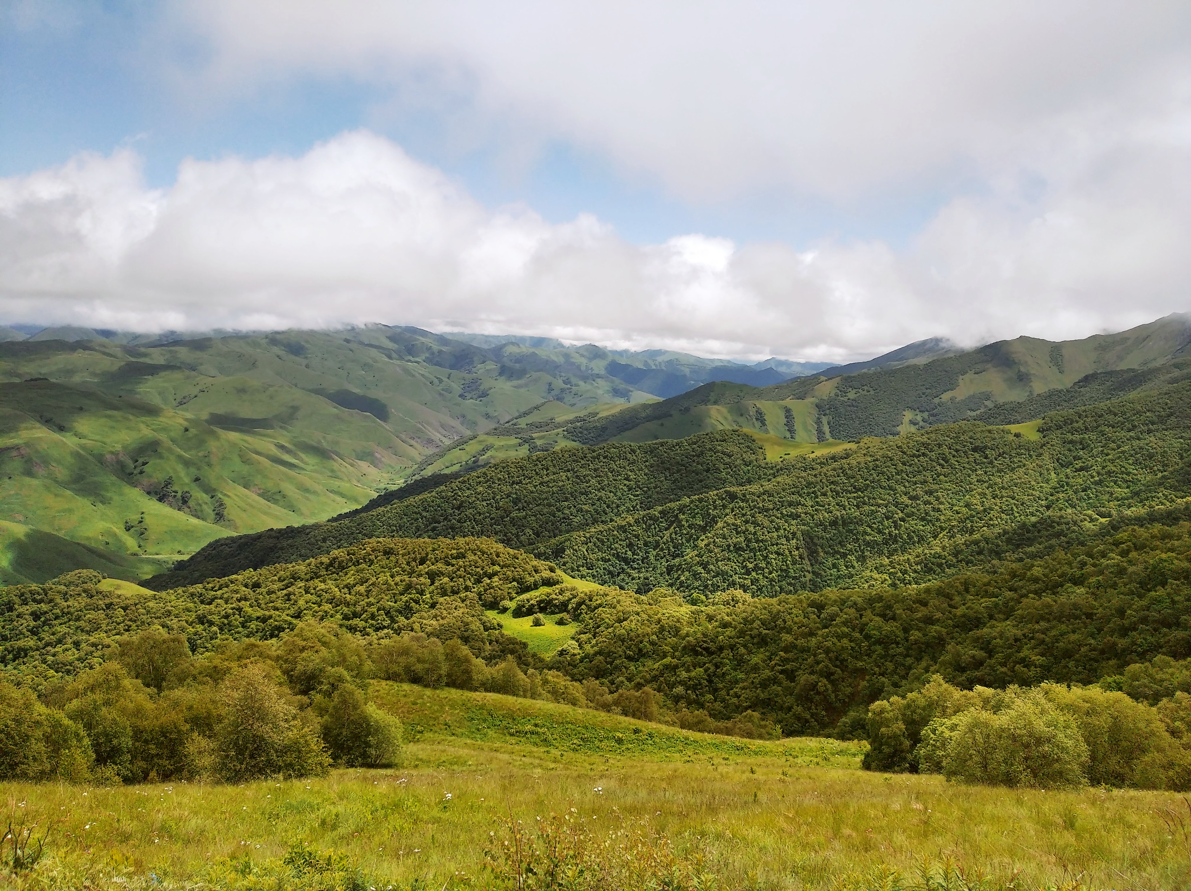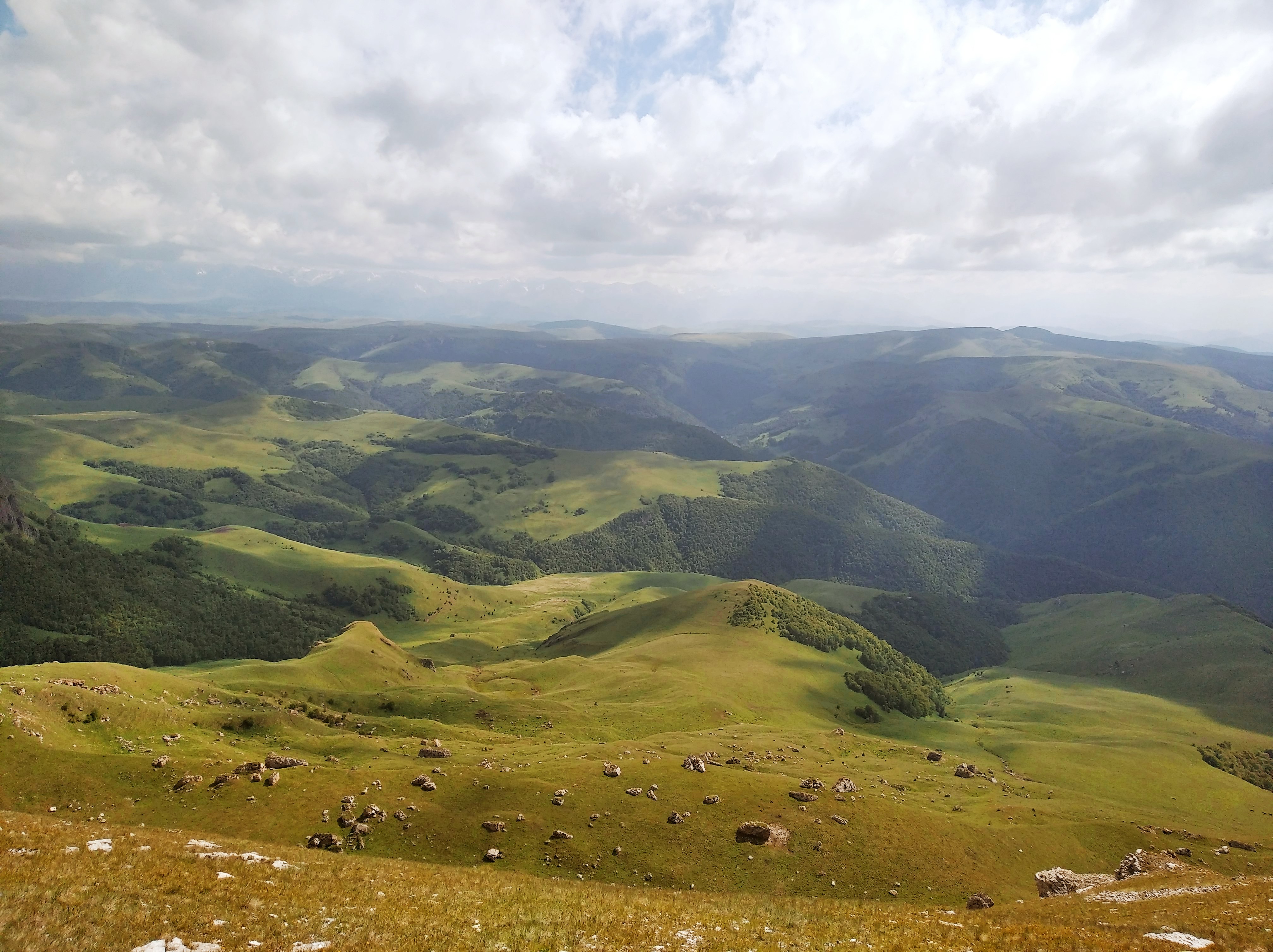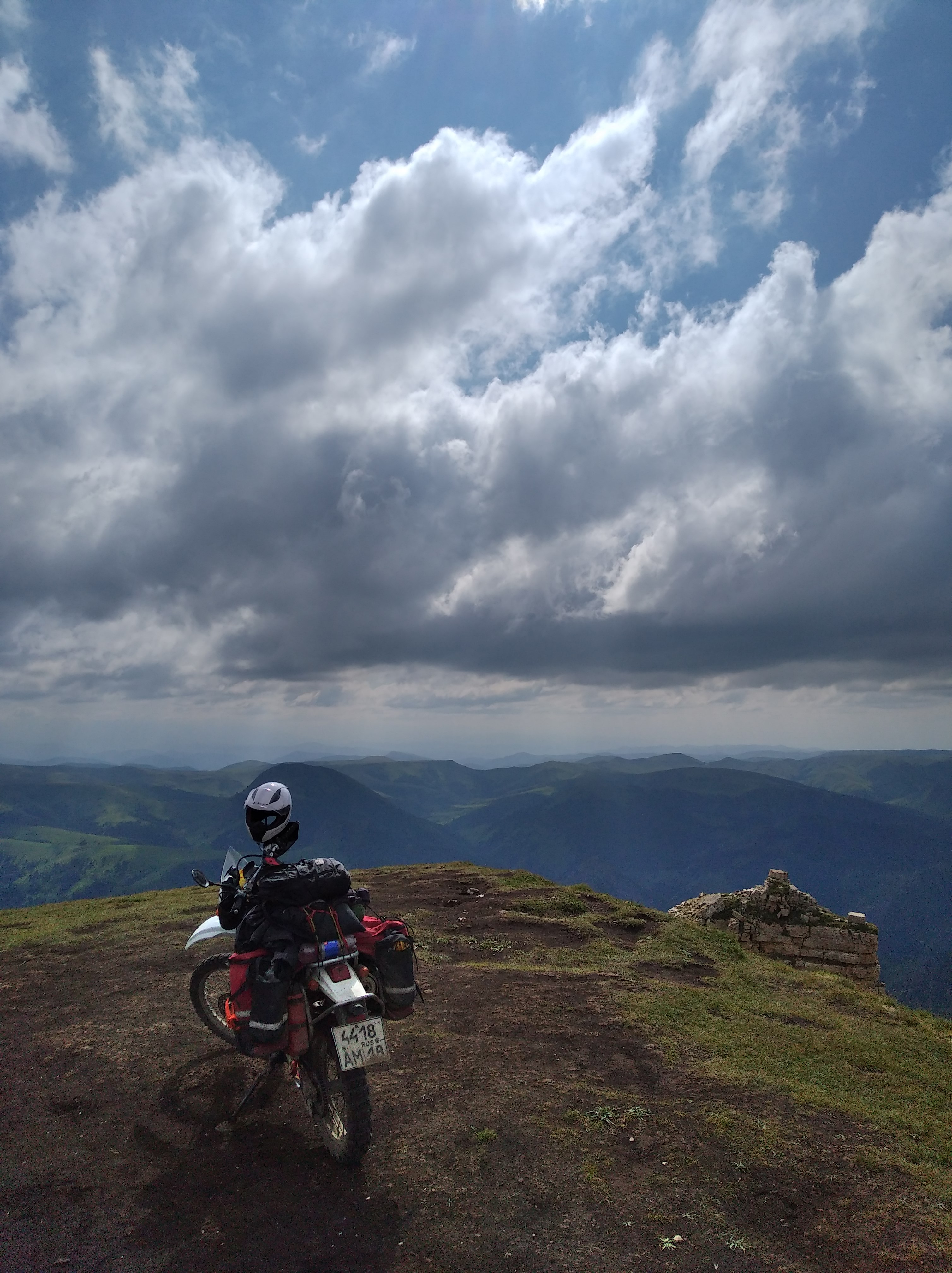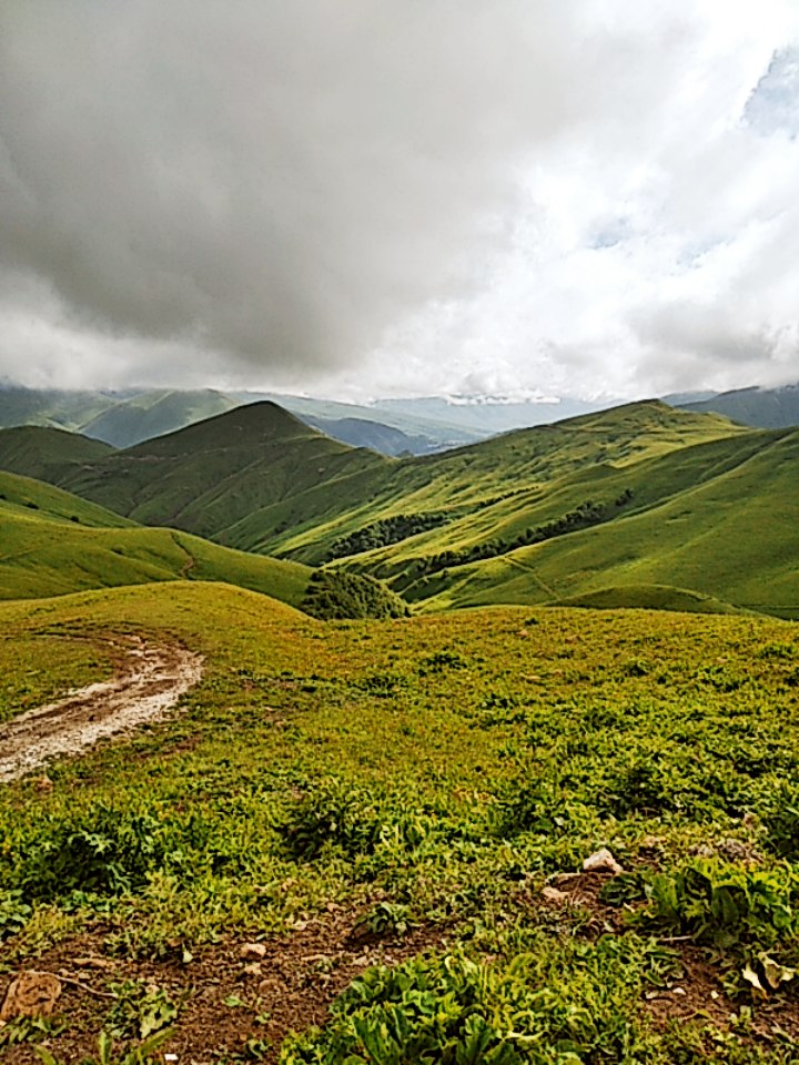 Зато, без дождя, но вокруг постоянно ходят синие тучи, а температура +25. И дорога так удачно меж туч шла. Прям, зашибись.Тааакие то просторы вначале были, а потом стало скучно. Ещё уставать начал, голова болела. Кстати, расширитель жопы,что я приделал на Джебель реально работает. Без него бы я уже окаменел. Гелевые вставки в седло наверное лучше, но и так неплохо. В Баджаже я уставал сильнее.