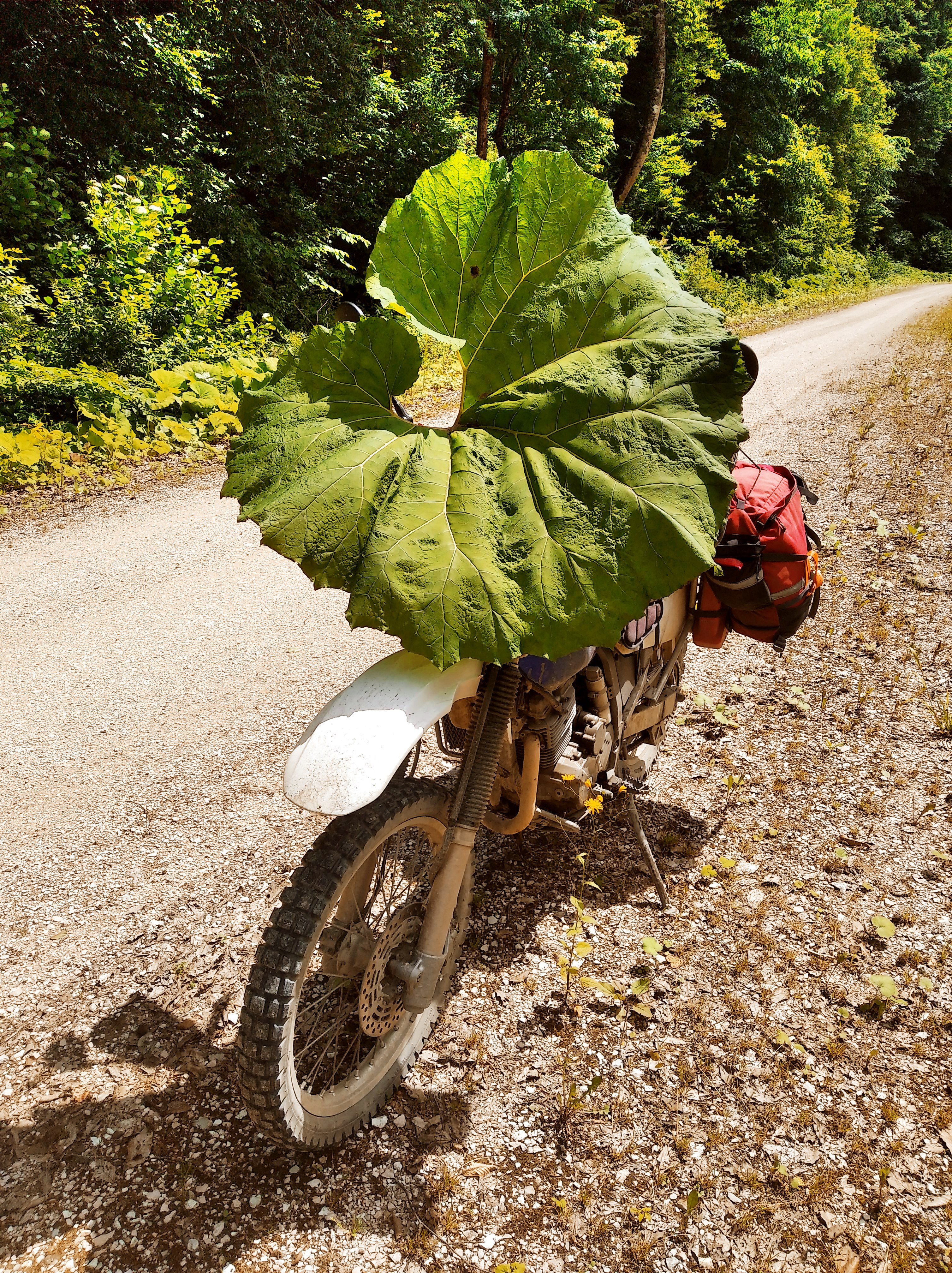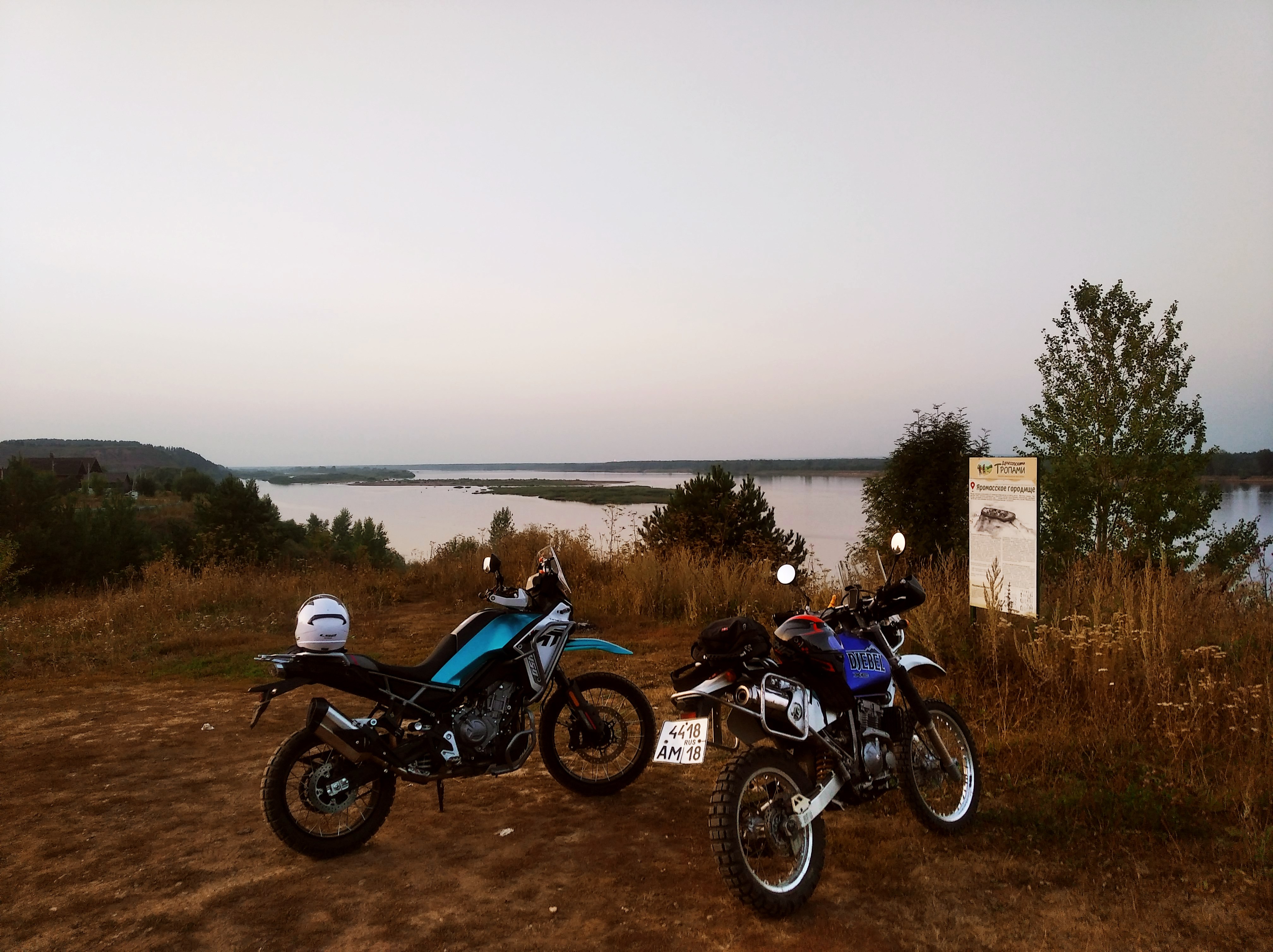 Так, надо что-то срочно думать с багажной системой. Я брал с собой лишь палатку и в сумке одежду + коврик. Так не пойдёт. Хочу купить пластиковые 20л канистры и попробовать закрепить их под углом параллельно глушителю, используя пассажирские подножки, как упоры. Поглядим.