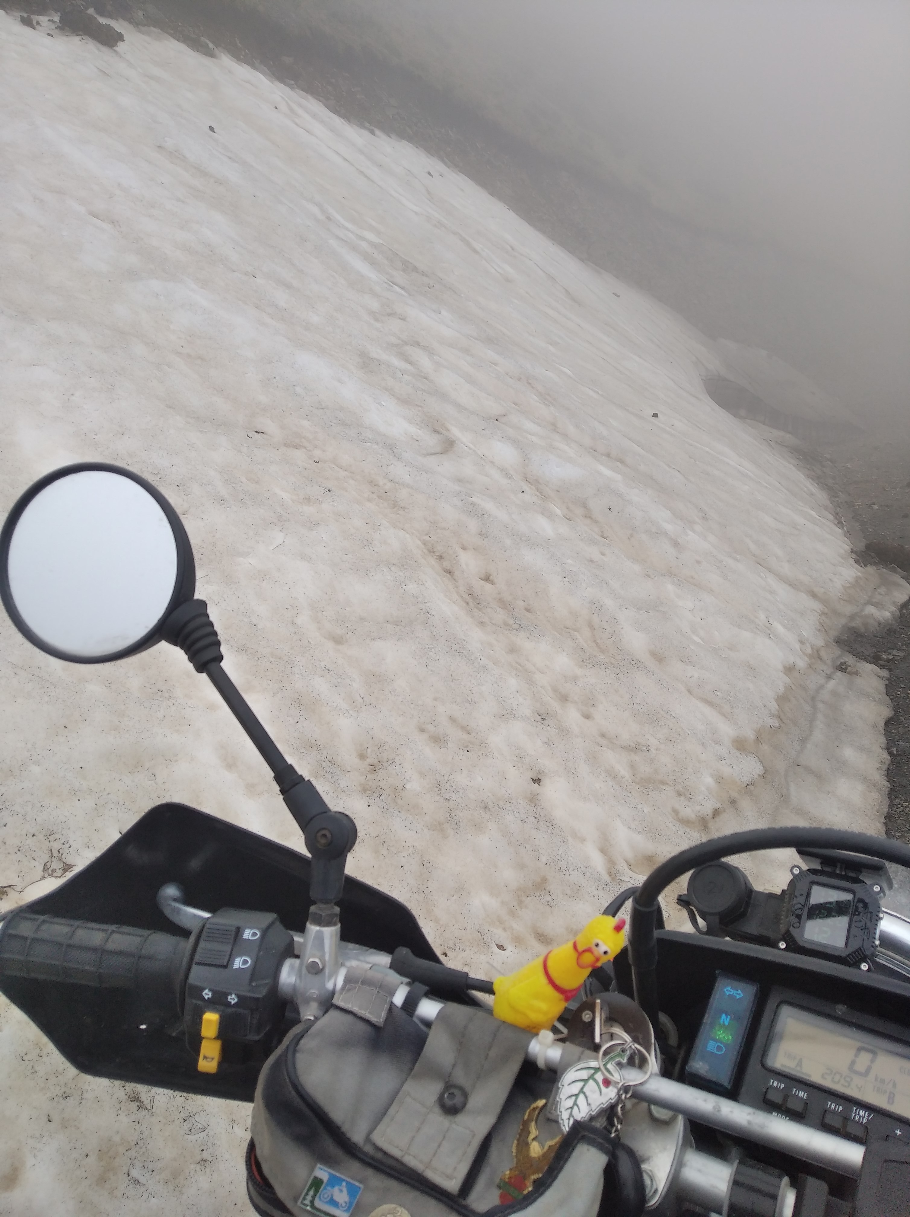 Что ж, первое, что я подумал, сев на него и проехав первые метры: да это ж БАДЖАЖ. Оооче похожие ощущения. Едрить, что ж ты такой широкий то!? Бак в 3 раза шире, чем у Джебеля. Он шириной почти СРУЛЬ. Башня ветровика где-то далеко, что рукой не дотянуться. Как там вешать навигацию и управлять ею вообще непонятно. Буду крепить там датчик давления шин и термометр.