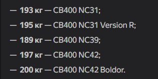 >>504933 >Сибиху или что-то подобное взять около 160кг 190 сибиха весит снаряженная. С какого хуя это объективно дохуя стало, я чета и не понял. Вес мопеда ощущаешь только когда руками его толкаешь. Обычный средний вес обычного среднего мопеда. Для литровой спортухи это вообще копейки. Люди на чопперах 350кг передвигаются по городу и не пердят.