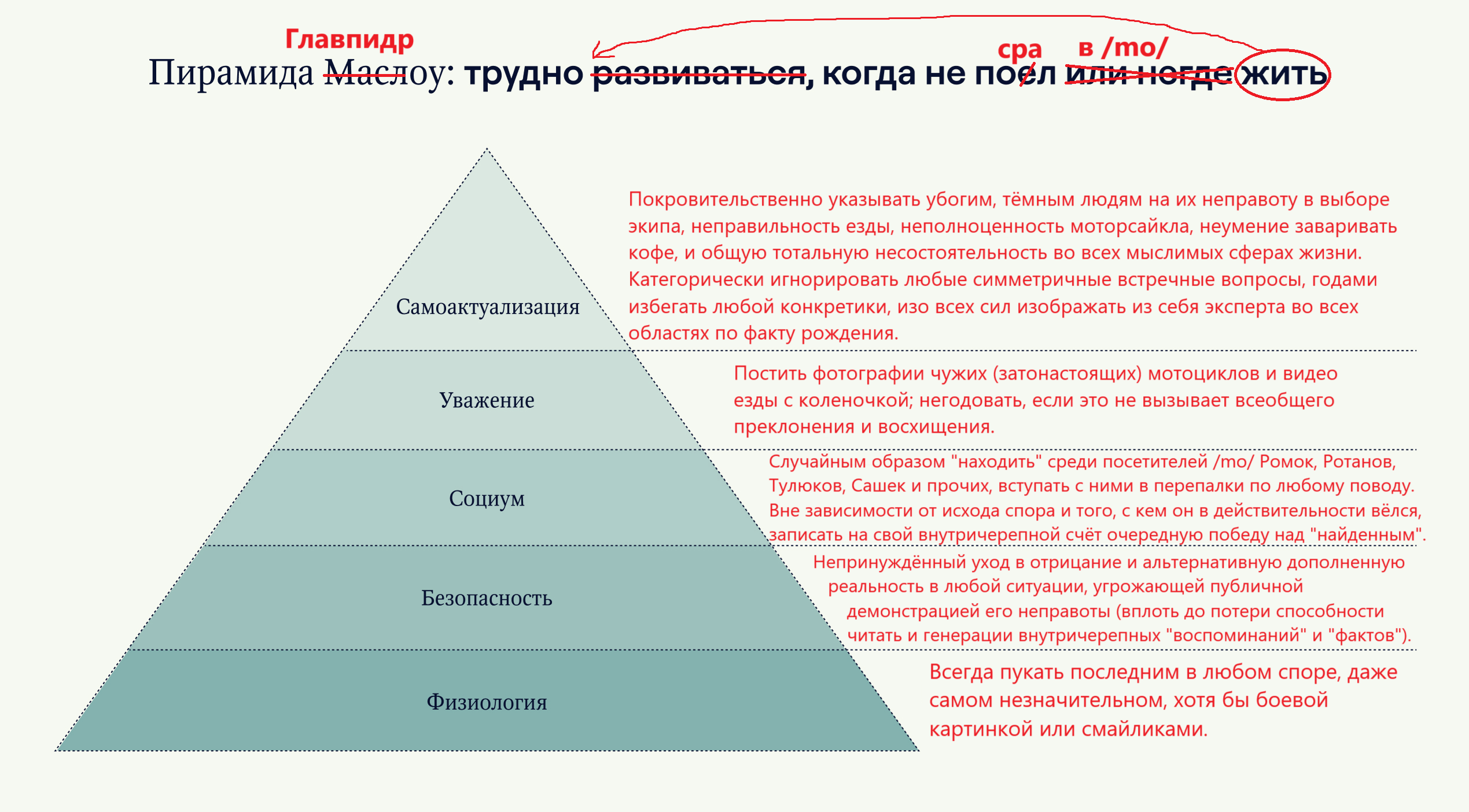 Может звучать как оправдание, но из близких знакомых ни у кого нет мото-прав. Ан нет. Есть одна знакомая байкерша, у неё муж байкер и они оба ездят, но у неё прав нет никаких, лол Подписан правда на одну дноклассницу, у неё кавасаки ниндзя, но судя по её постам она как будто из своих покатушек выжимает максимум эмоций: я катаюсь я поехала я на заднем колесе я упала и тд чет херня какая-то. Её "эмоции от мото" выглядят как-то наигранно что-ли инст дноклашки с мотоконтентом - @alexa__fox Я же когда сажусь в новую машину,не выделываюсь "смотрите, у меня колёсики крутятся"