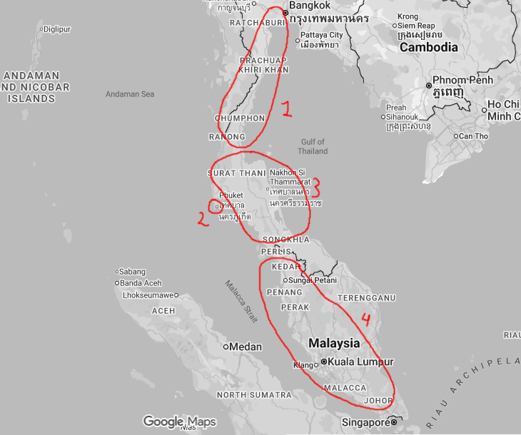 На 1 - пример годного южнотайского мотоциклизма, 2 - 95% малайского мотоциклизма, 3 - малайцы бравируют ценами на бенз, 4 - редкий пример годного малайского мотоциклизма, какртинка красивая, но там впереди ливень при 15 тепла и отсутствии бензина.