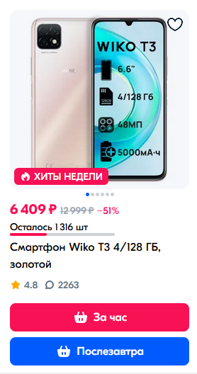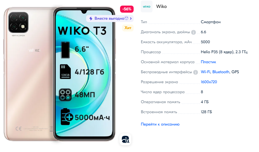 дороже есть у них же более новая модель Wiko 10 4/128 ГБ за 7к там есть NFC, но вроде как камера там хуже, чем у Т3