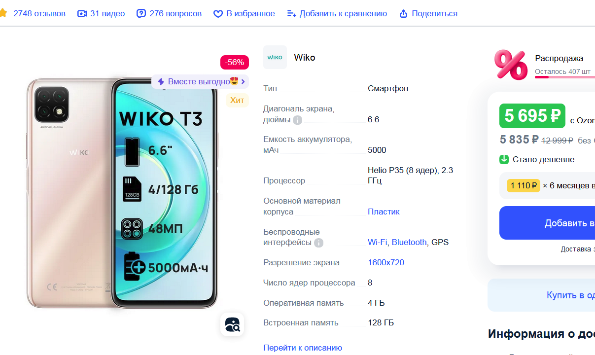 >>2459976 во-первых зачем тебе он на озоне если в билайне дешевле на 500 руб, во-вторых там жалобы на плохой айпиэс и усталость в глазах после него в третьих хуй знает что для тебя лучше. на том же озоне распродажа Вико идёт, дешевле 6к, камеру там за эти деньги хвалят