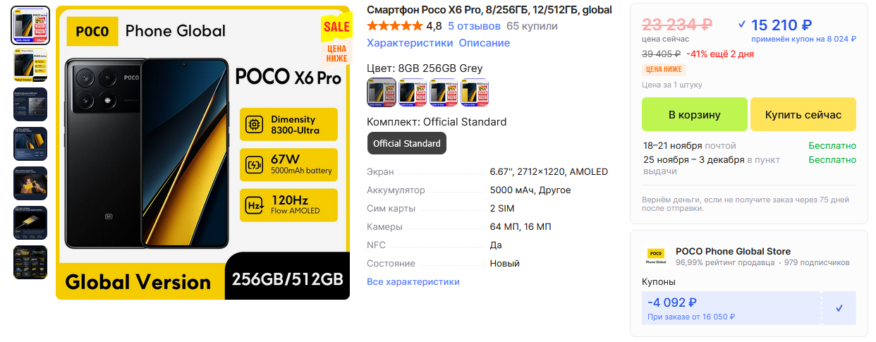 Покупал через я.маркет за 30к вместе со страховкой на 3 месяца. Ага-да, я знаю что для маминых киберкотлет можно было купить какой-нибудь поко с турбонаддувом, но я не хотел поко, это мой осознанный и выстраданный выбор. Ага-да, я знаю что "страховка" - это очень эфемерное понятие, но для устройства неизвестного происхождения страховка за 600р - небольшая цена, которой можно воспользоваться в каких-то случаях.