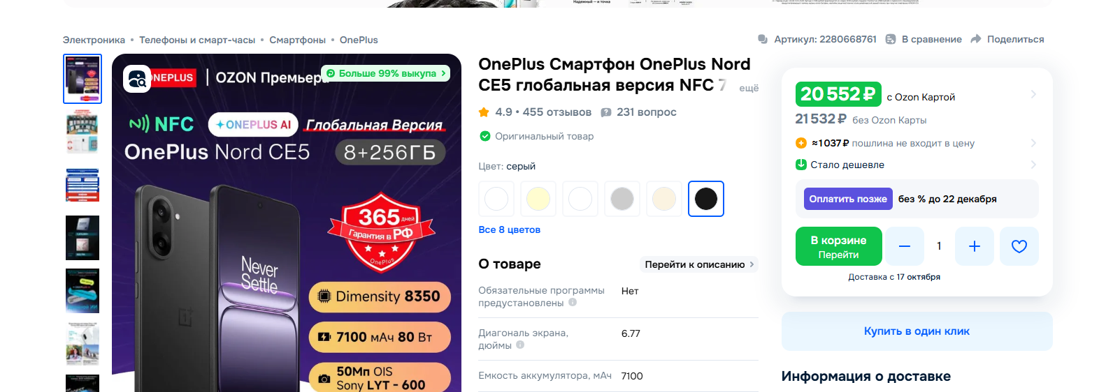 всем привет ребята. Выбрал себе норд 5се с озона. хороший ли смарт без глюков? обзорщиики хвалят операционку быструю и без рекламы( а это важно для меня) физический датчик приближения(т.е нормально будет работать блокировака экрана) Хорошее железо(в игры я конечно не играю) но все равно, чтоб быстро работал тянул приложуху. Всроенная память бысрая уфц 4.0 аккум большой. Ну просто макимум оптимальный телефон. Я не ошибся с выбором?