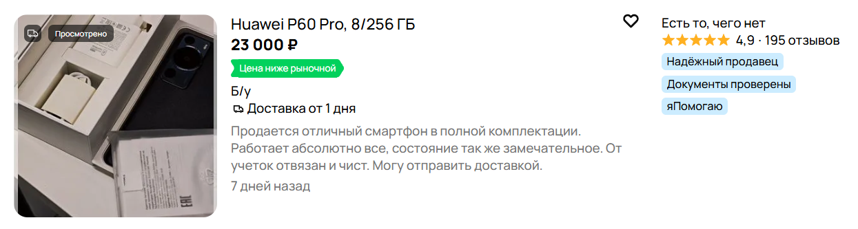 У женщины, у которой я хочу купить р60про, в объявлении указано только отправка сообщений и она отвечает через 12 часов или типа того, сообщения не доходят... присмотритесь в отражение...
