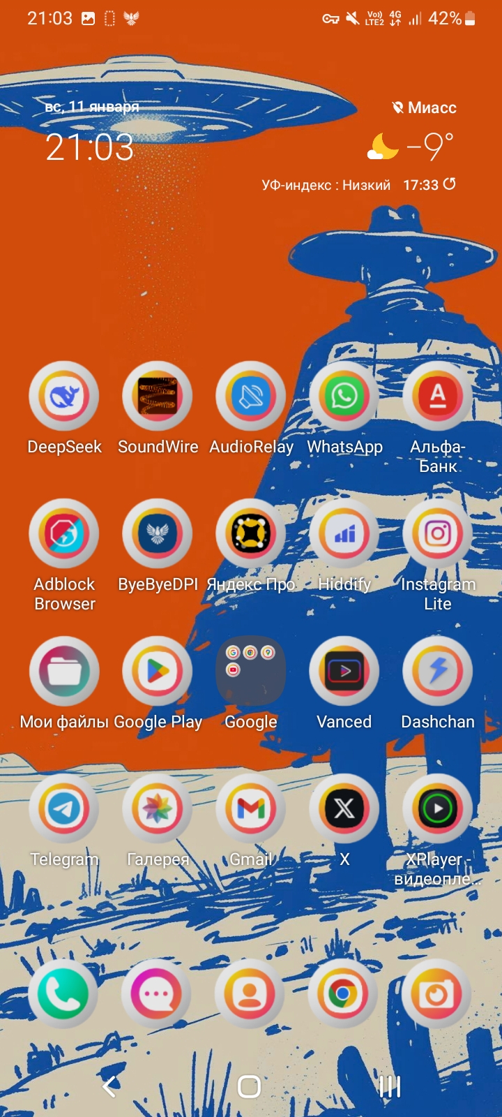 >>2703774 Цвета странные, этот оттенок оранжевого всегда мне напоминает почему-то о совке, отсюда хтонь. Иконки тоже странные, какие-то слишком васянские что-ли... Набор приложений тоже не впечатляет: вместо браузера хромой и ещё один хромой сомнительного качества с адблок плюсом; вансед вместо ревансед, так ещё и вероятно пропатченный не самим собой, а скачанный хуй знает откуда; дашчан для прозябания на мылраче; хуяндекс сервисы; повтор иконок на самом рабочем столе и в папках.