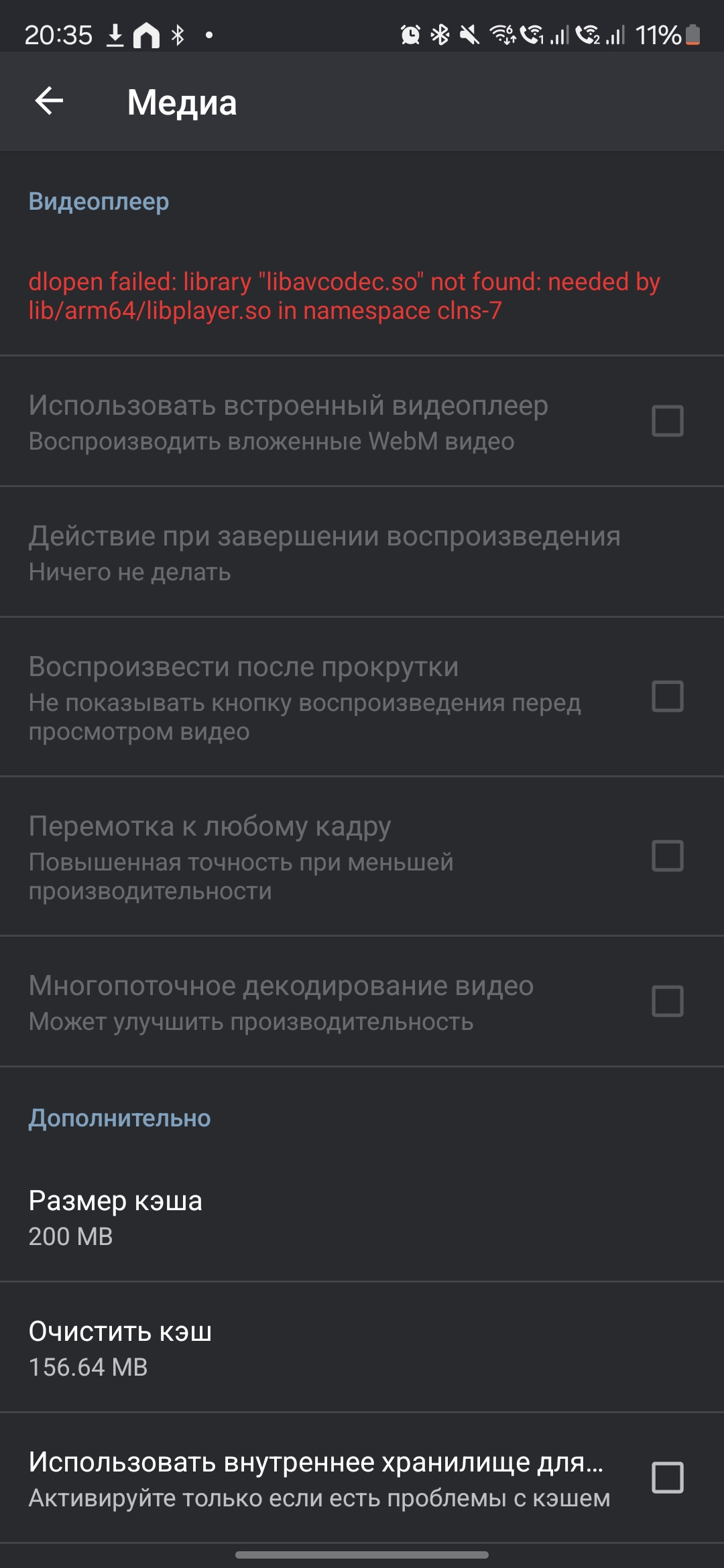 Как пофиксить замедления видео? Небольшая часть процентов 10-15 от всех видео файлов воспроизводится во встроенном проигрывателе где-то на х0.4-0.5 скорости с высоким звуком из за замедления. Если сохранить такую вебм и посмотреть в другом проигрывателе то все нормально. Алсо ещё бывает редко проебывается соотношение сторон. Обновлять пробовал. Смартфон реалми с67 андроид 14