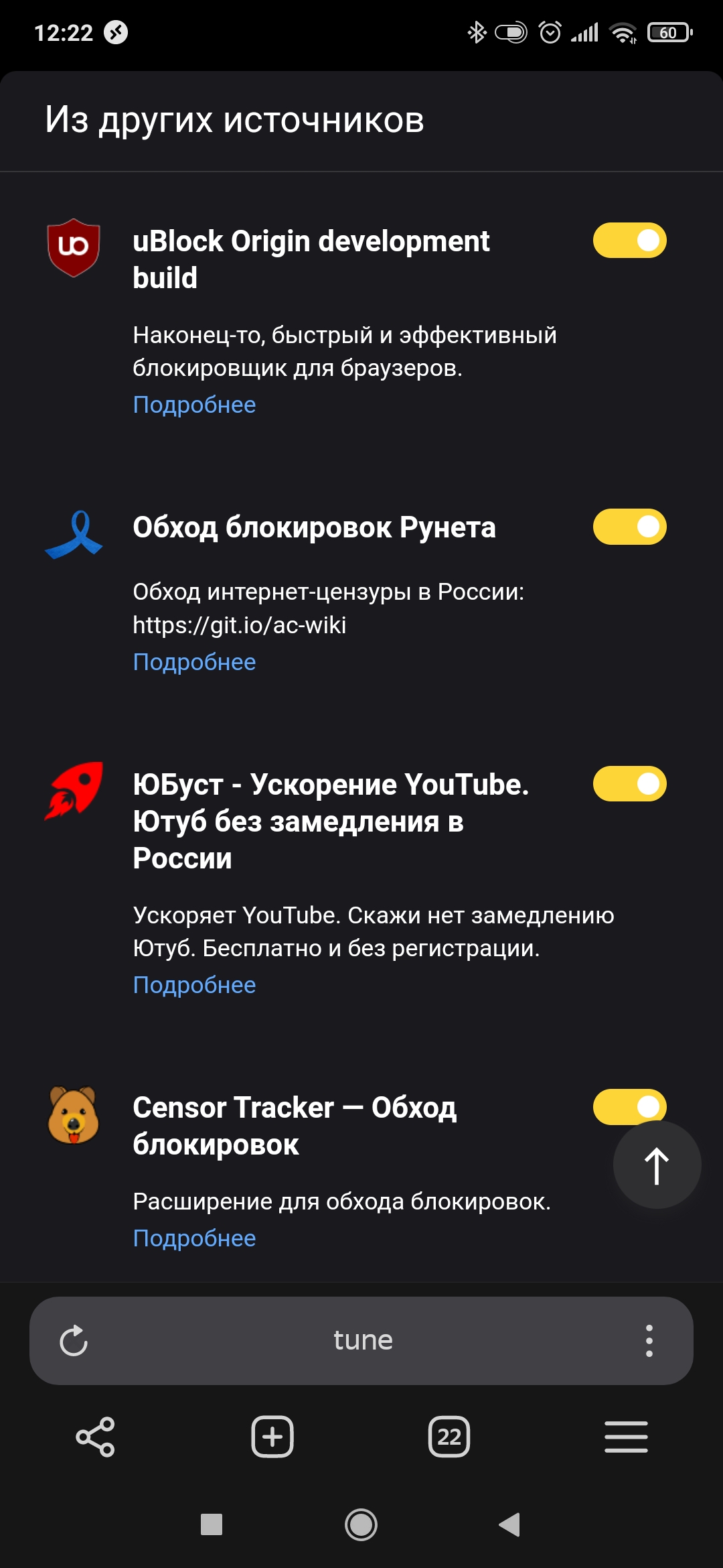 Как же заебала эта ебаная мразь, под названием Kiwi Browser Эта говнина считается лучшей на ведре, в основном засчет того что это полноценный хромиум с инструментами разработки и как следствие возможностью ставить свои расширения в режиме разработчика. Но с точки зрения обычного юзабилити это тот ещё ублюдок: