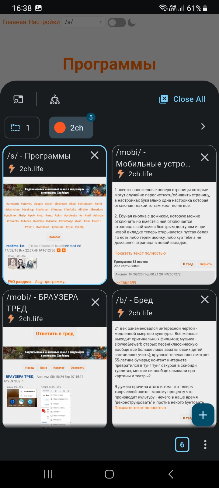Ебать я чё в ф-дроиде откопал, зацените: https://docs.weblibre.eu/ https://github.com/FaFre/WebLibre Кто-то просто с нуля запилил браузер на геко-движке, охуеть. Да, он в альфе, да пердит, лагает и вылетает. Но выглядит интересно. Есть древовидный список вкладок, контейнеры с изоляцией кук и тор. А также дохуища настроек приватности - по сути about:config, но с кнопками.