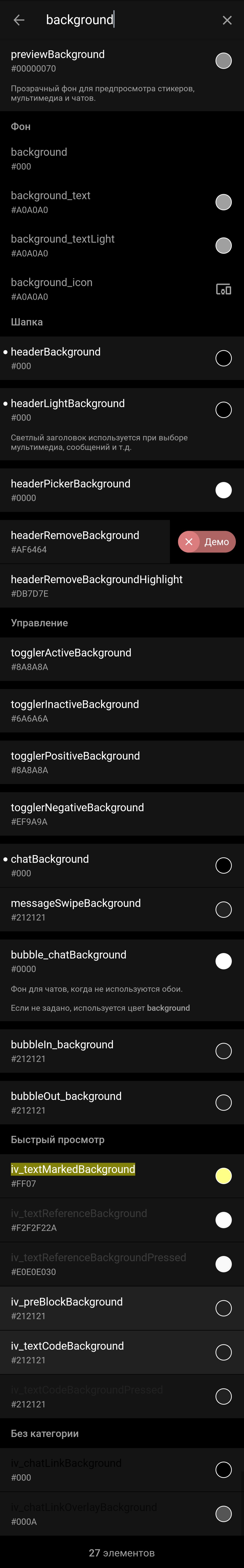 Такой вопрос. Вряд ли кто ответит, но всё же. Кто пользуется Telegram X? Где в настройках темы поставить 0000 чтобы покрасить списки каналов в черных, как на 2м скрине?