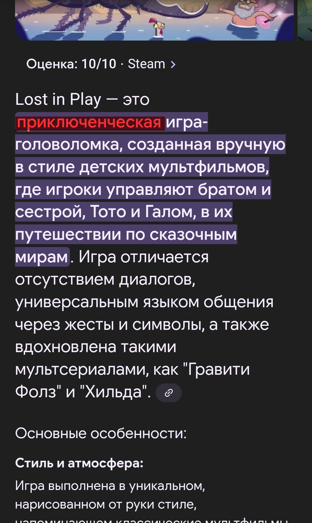 Лост ин плей – играл в нее на пк, это поинт анд клик адвенчура, решил на телефоне затестить, но к сожалению я ее очень хорошо помню, поэтому не стал перепроходить. Советую люто, игра будто мультик со своей атмосферой.