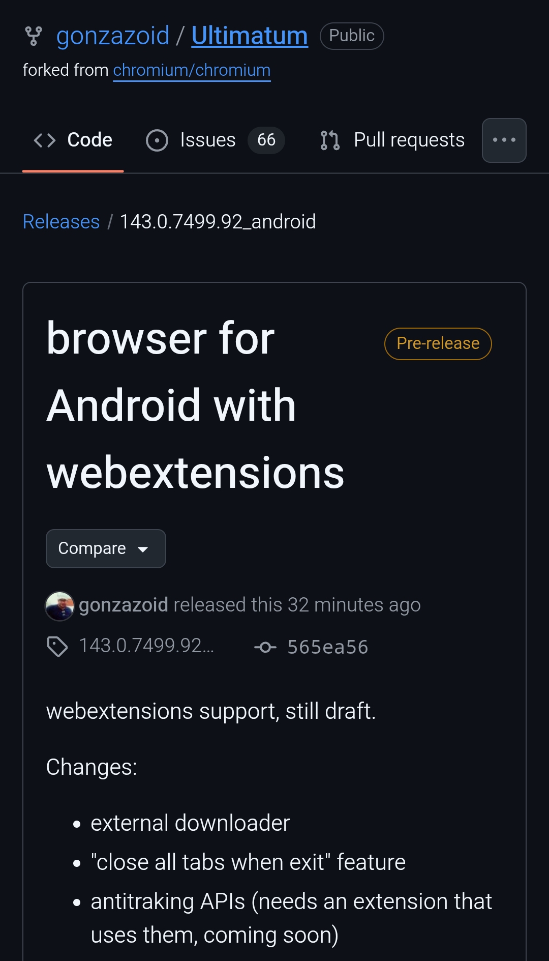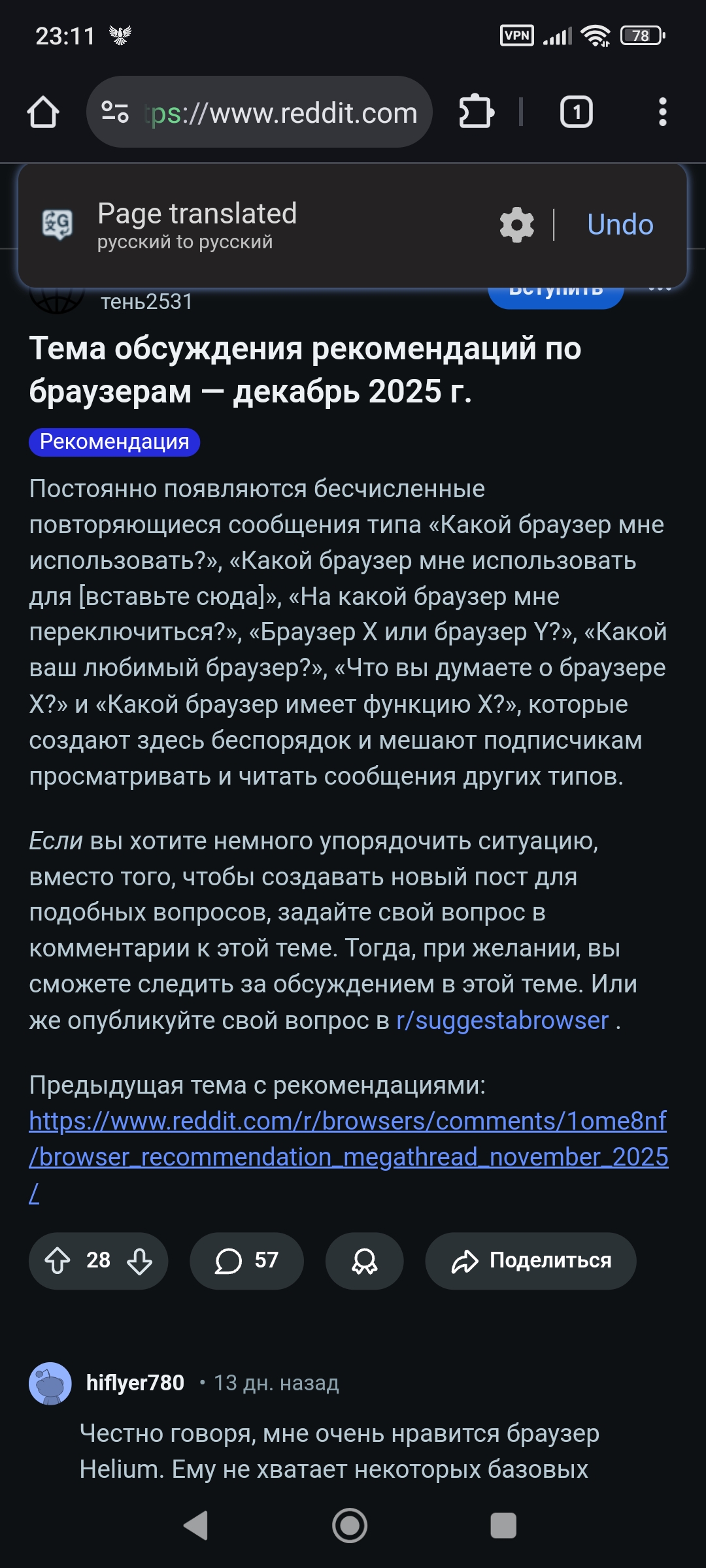>А я типо не знаю думаешь?) А до этого обновления какой там промежуток был, не подскажешь? Обновы у него достаточно частые для таких приложений, 2 месяца это вообще хуйня ни о чем. У меня секьюрити патч от Гугла на Самсе последний доступный за сентябрь 2025, а это действительно важная хуйня причем официальная, а ты воняешь когда браузер 2 месяца не обновлялся, дохуище популярных официальных прог не всегда так же часто обновляются включая браузеры(тем более чел не просто версию хромиума повышает от обновы к обнове как ангуглед)
