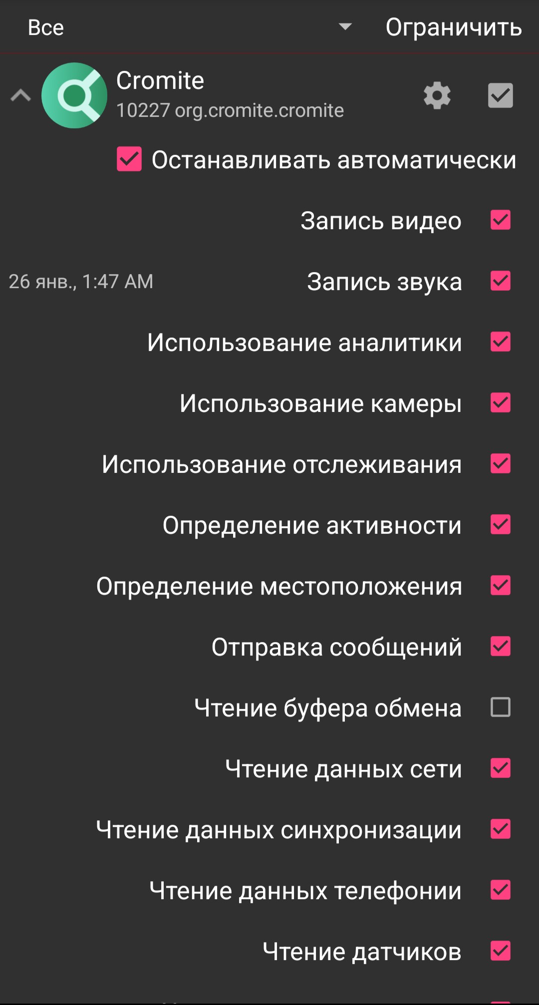 Короче аноны такая тема: Cromite тихонько, в крысу пытается писать звук. Наблюдаю за ним подобное уже очень долго. Писать я ему конечно нихуя не позволяю, благо всё это дело режется xposed-ом. Но тревожно. Кто что думает?