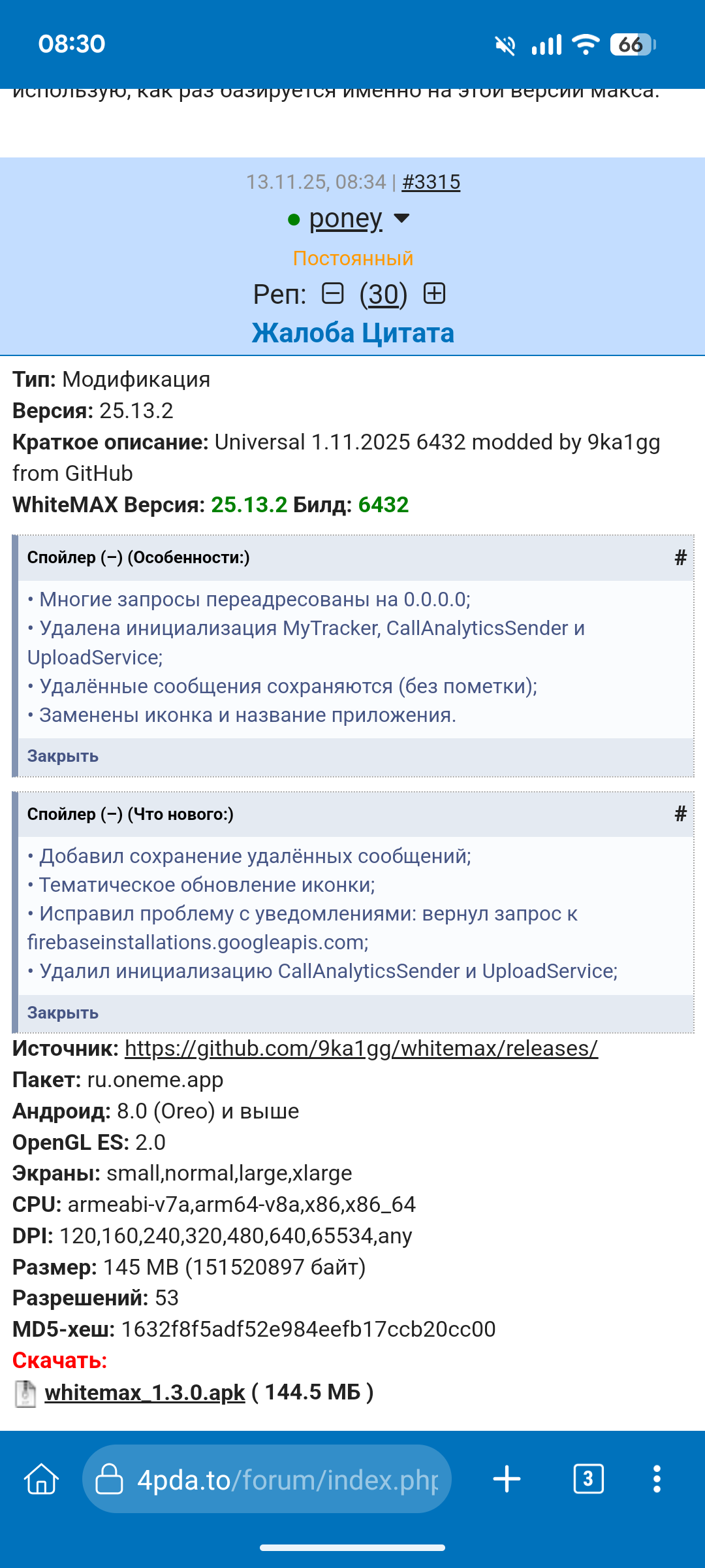 >>2697114 Ну приложение макса садит батарейку. Там же вроде пуши мимо FCM идут если уже реализовали? Обещали Да и нахуя вообще лишняя жрущая хуйня, которая к тому же имеет фоновый доступ к камере? Просто зачем садить батарейку, когда можно просто зайти на web.max.ru и чекнуть что нужно раз в неделю? М?