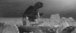 Чудовище с глубины 20 000 фатомов. Точно смотрел раньше, но почему-то был не отмечен на кинопоиске. Самое лучшее, что этот фильм есть в потрясающем качестве и с дубляжом. Плохое - тут очень много пиздежа ни о чём. Я видел динозавра, нет - ты шизик. Я тоже видел, ого, шизики плодятся. И так весь фильм. Сам кайдзю годный, прикольно маяк разрушает, но в итоге как только его убивают, фильм мгновенно заканчивается, даже без эпилога.