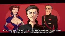 Герцог смотрит на Харконеннов как-то недовольно, свирепо и в то же время грустно и с недоумением.