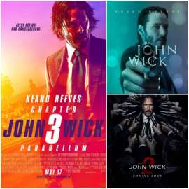 Ждал боевик с профессиональным киллером, профессионально мстящим, примерно как в убить Билла. Первый фильм в итоге Гарри Поттер про мафию, два остальных Джон Поттер срёт себе в штаны, вылизывает начисто и срёт опять, повторить несколько раз.