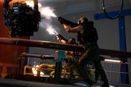 Готов поспорить, на этом фото со съемок запечатлена финальная ЙОБА заварушка сиквела. Кэмерон любит такое. Прям копия первой части. Только там наемники палили в Нави с воздушных вундерлетов, а тут палуба огромного морского корабля, судя по всему. И снова они палят из своих пукалок в какую-нибудь грандиозную НЕХ. Первый конфликт совсем не научил людей правильной тактике.