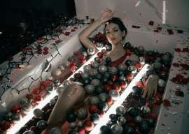 Мокрая и потная после зала, представляю как от нее пахнет :3